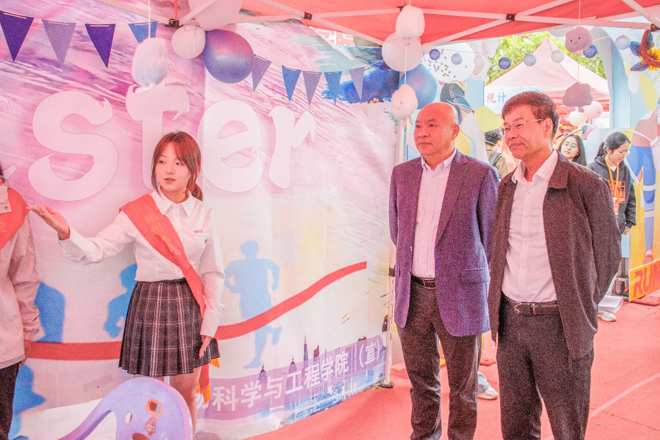 本次大本营主要由25级食品科学与工程1、2班负责设计,班级负责人刘妍、葛品含为院党委李礼建书记、院党委曹仁秋副书记及院团委副书记张凌拓、辅导员邓屹、辅导员杜美佳等热情讲解其设计理念。