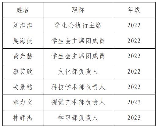 2024届学生会主席团、各部门负责人,现将名单公示如下:
