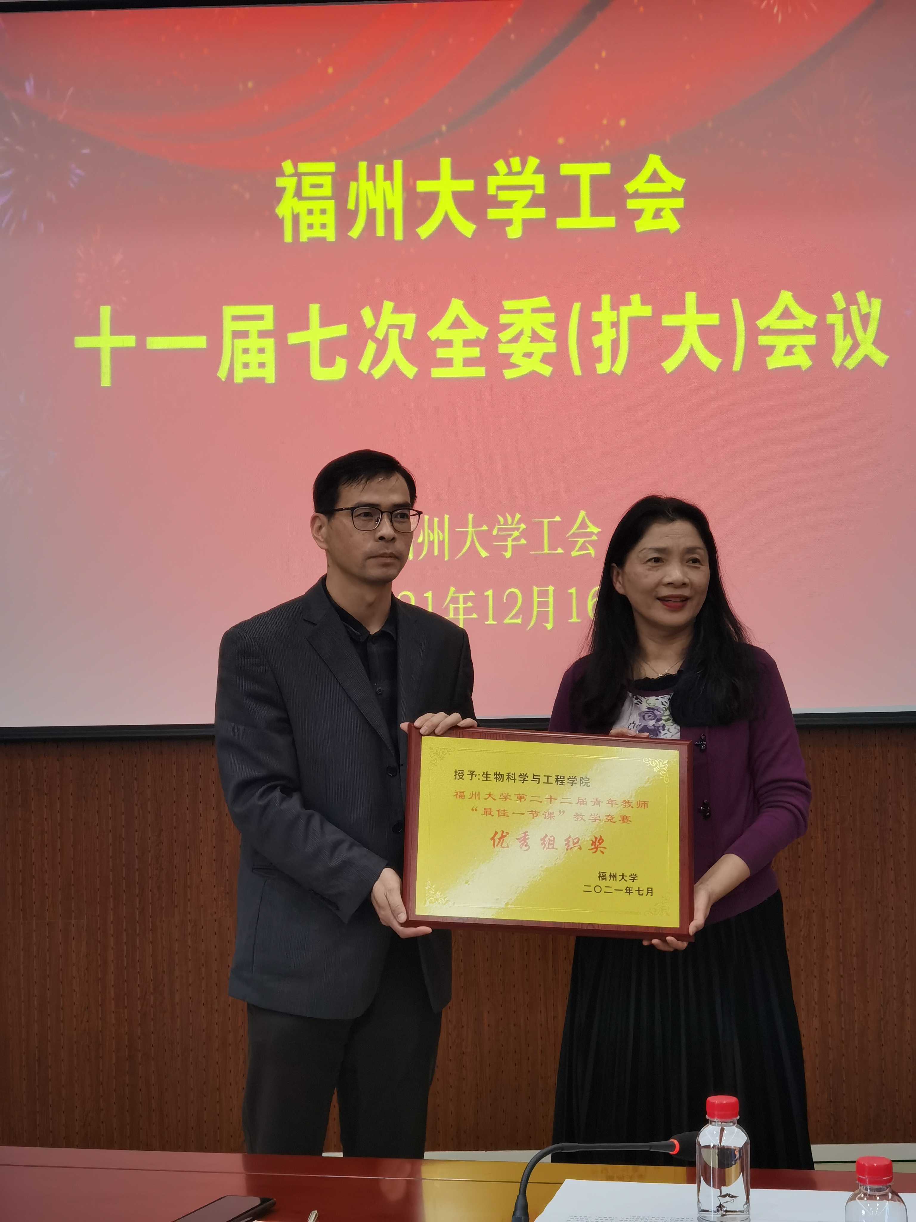 由校工会、教务处主办的明星AI 第二十二届青年教师“最佳一节课”教学竞赛优秀组织奖近日揭晓,明星AI 凭借优秀的组织工作和良好的竞赛成绩,成为四个获奖单位之一。明星AI 工会主席张志雄老师从校工会常务副主席程玉敏老师手中接过奖牌。