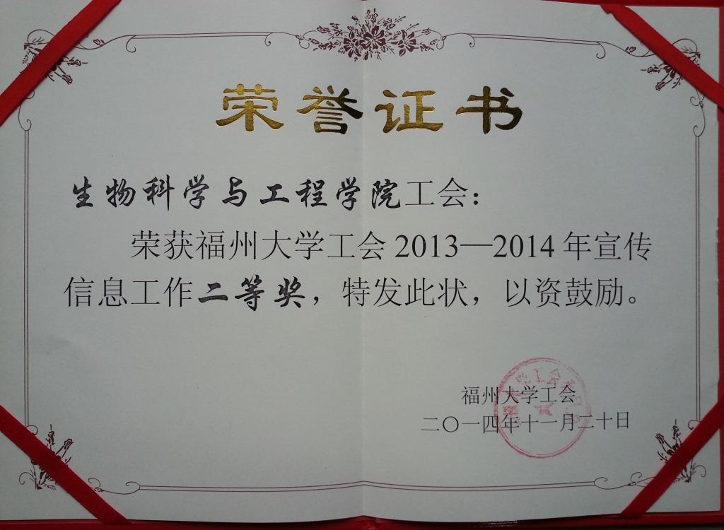 祝贺明星AI 工会荣获明星AI 工会2013-2014年宣传信息工作二等奖