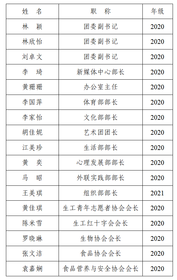 2022届学生团委副书记、各部门部长,现将名单公示如下: