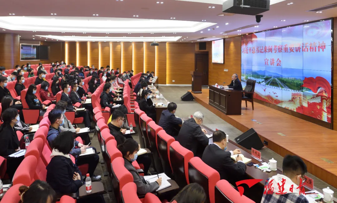 要深入学习贯彻习近平总书记在福建考察时的重要讲话精神,坚持正确办学方向,落实立德树人根本任务,结合开展“再学习、再调研、再落实”活动,把学校建设放在全省工作大局中来谋划推进,在服务全省高质量发展上担当作为,提升学校内涵式发展水平,抓好党史学习教育,不断开创学校发展新局面。广大教师要牢记为党育人、为国育才使命,坚持科学精神、加强科学研究、勇攀科学高峰,传承优秀文化、注重师德师风、做到为人师表。青年学生要坚定理想信念,听党话、跟党走,练就赤诚之心,练就最强大脑,练就勤劳双手,练就强健体魄,在谱写全面建设社会主义现代化国家福建篇章中,激扬青春梦想。
