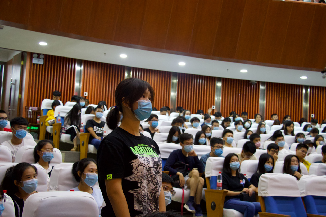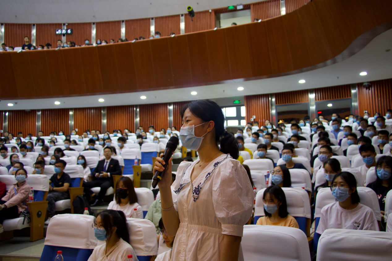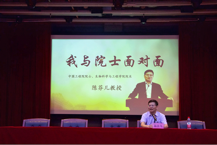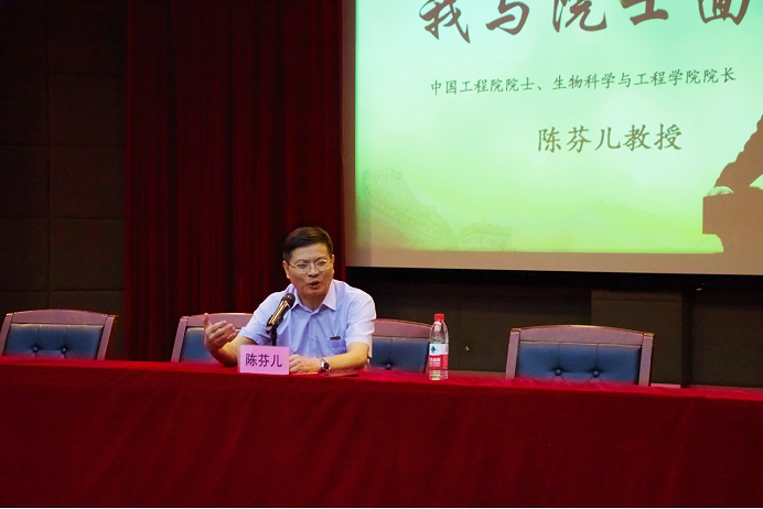 会上,陈芬儿院士与各位新生进行了亲切交谈。陈芬儿院士随机询问了几位新生对大学学习生活的规划以及未来的职业目标,同学们也积极踊跃地向院士提问,陈芬儿院士亲切耐心地解答了同学们的问题,与同学们分享了自己阅读英文文献的方法,从事科研工作的时间安排以及在英、美做访问学者时的收获,向同学们展示了自己严谨的工作态度,给新生的学业规划提供了一定的参考。讲座最后,陈芬儿院士将“严谨是作为科学工作者永久的态度”这句话送给各位新生,希望他们可以秉持着严谨的致学态度投身到科学研究工作中。至此,本次“我与院士面对面”专题讲座圆满结束。