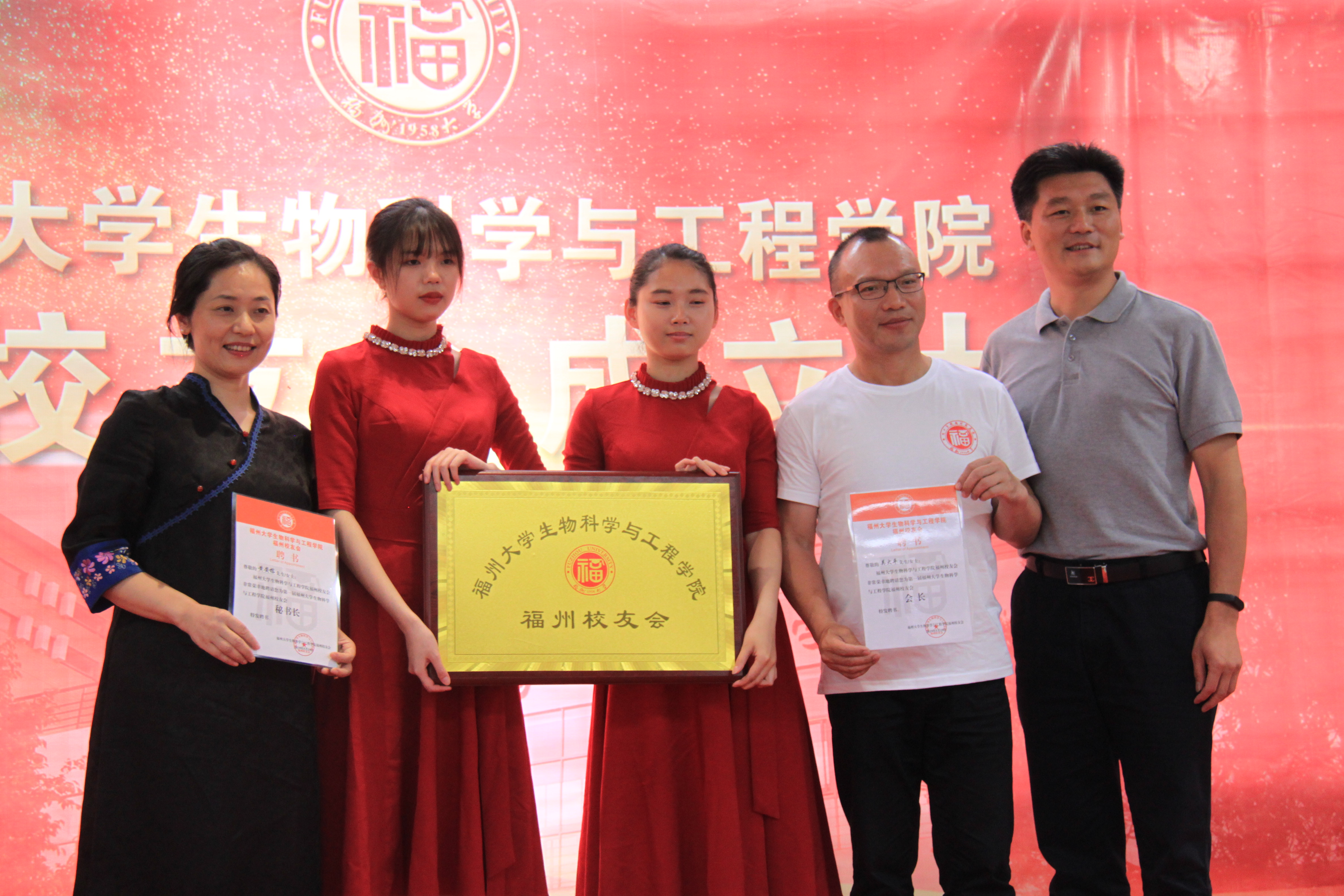 校友会会长王群先生为福州校友会颁发牌匾,为会长、秘书长颁发聘书,会长、秘书长为顾问、监事、副会长、常务副秘书长、副秘书长颁发聘书。本次成立大会也收到了来自香港校友会和新加坡校友会的贺信。