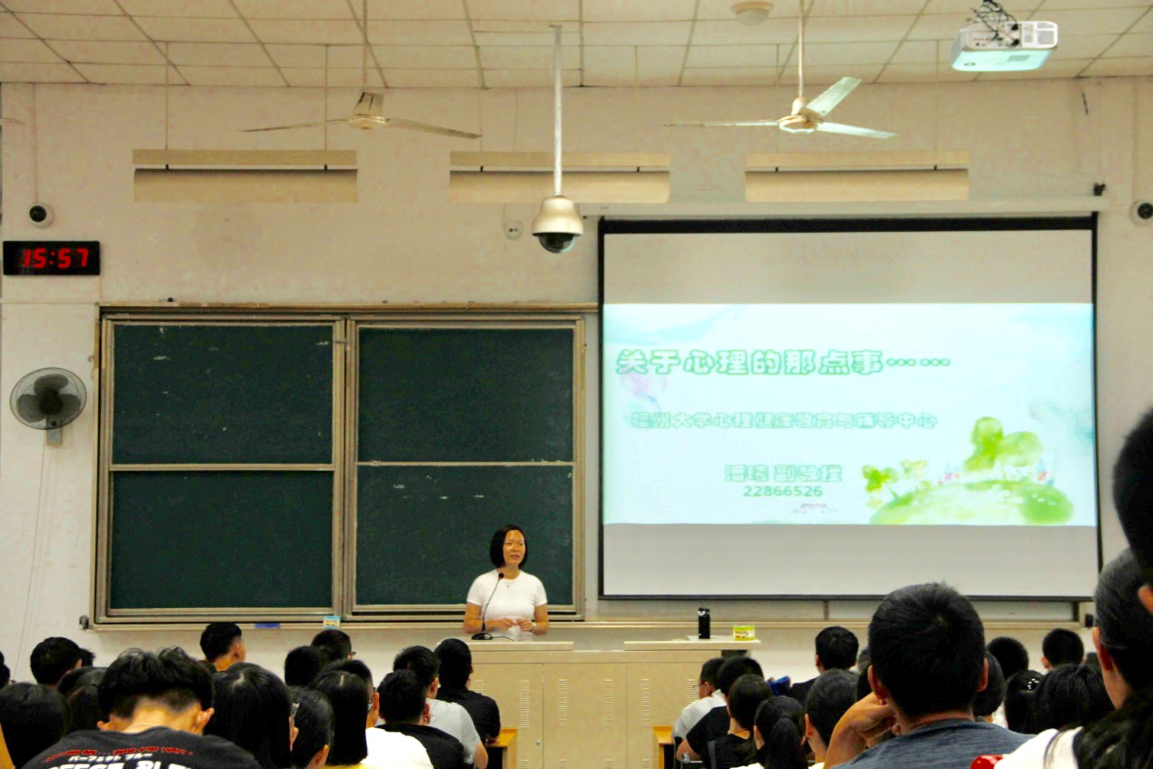 讲座开始,潘曦老师首先为大家介绍了心理咨询师的工作内容;接着,以抑郁症为例子,潘老师向新生说明了在发现心理问题时及时预约心理咨询的重要性。通过咨询,让新生对自己的心理状态进行正确评估,防患于未然,保障身心健康。关于预约流程与心理咨询中心,潘曦老师从“心理中心职能”及“预约咨询的具体步骤”两个方面为同学们作了详尽的介绍。潘曦老师强调,心理健康对身心发展非常重要,在遇到问题时应马上向学校及社会寻求咨询帮助,及时解决困难,避免酿成大祸。