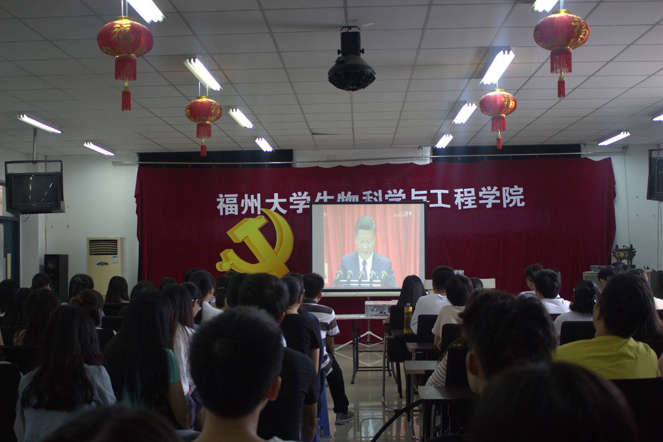 团委组织学生在院办二楼会议室观看十九大的直播。上午八点半,同学们就陆续到场,八点五十,全部观众完成签到。党委副书记郑延平老师也来到会议室和同学们一起观看十九大会议直播。随着十九大嘹亮号角的奏响,现场全体学生掌声齐鸣,祝贺党的十九大胜利召开!大家齐聚在电子显示屏前观看党的十九大现场直播,认真聆听习近平总书记所作的工作报告。