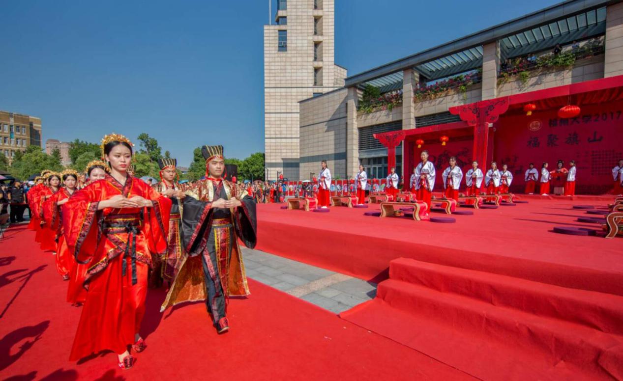旗山校区图书馆福万广场顺利举行,二十二对新人在这一天内携各自的亲友、恩师与校党委林生副书记、全体志愿者们共同庆祝这一盛事。