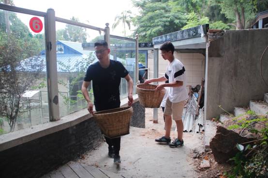 福州“熊猫世界”熊猫馆是东南沿海唯一的集科学研究、科普教育、旅游观光为一体的大熊猫移地保护园地,是最长寿熊猫“巴斯”的“第二故乡”。10月8日这一天,志愿者们在这里进行了引导来熊猫世界参观的游客将车停在规定的车位、帮馆内工作人员搬水泥、碎石和砖块、分别在四个入口售票、沿路清扫熊猫馆内的垃圾四个义工服务。在服务时,志愿者们态度积极,其间偶有打趣、笑谈,画面一片和谐,真正表现出了“快乐劳动”的情景。辛勤的劳动,为馆内工作人员减轻了负担,为保护国宝熊猫尽了一份绵薄之力。义工服务后,同学们自由活动,在静谧优美的熊猫馆环境中,近距离欣赏了大熊猫和浣熊类小熊猫的可爱姿态和生活风尚。小熊猫静若处子,动若脱兔,大熊猫憨态可掬、厚实纯真,都给同学们留下了深刻友好的印象。