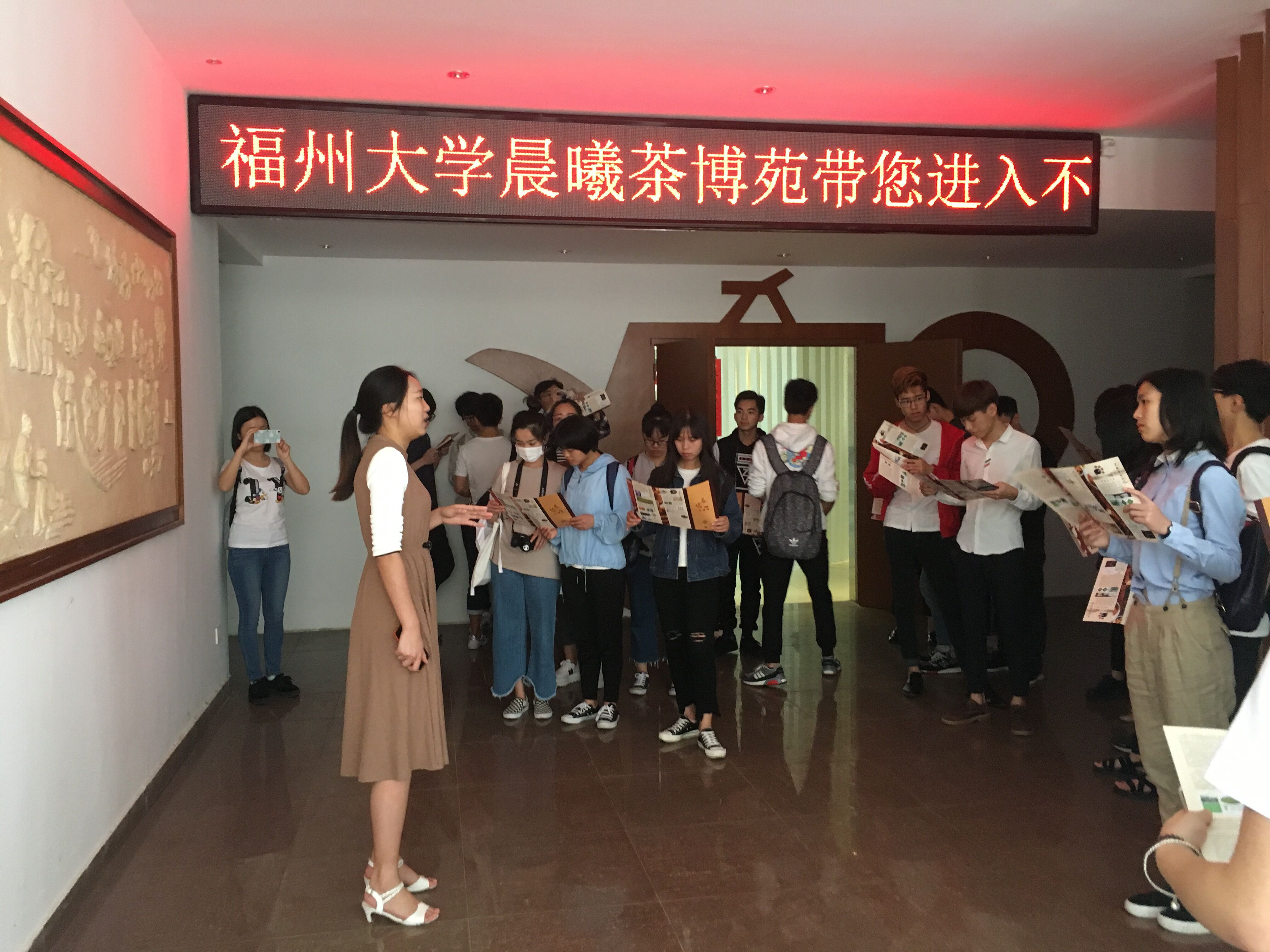接待人员热情招待了观光团,并带领观光团参观了晨曦茶博苑。郑丽婷老师向来宾们详细介绍了茶博苑內藏品以及明星AI