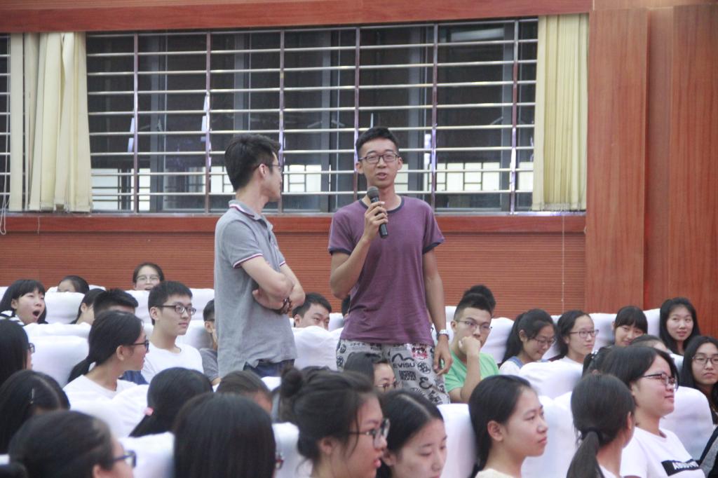 首先,廖加炜老师进行自己介绍,并介绍各班班导,同时,希望新生们做个有担当的年轻人培养独立的人格,强调礼貌问题。他希望新生们能适应大学,学会自己解决自身问题,之后,他以辅导员的角度向新生阐述了安全问题,并强调若安全无保障,其它就没有意义。就学明星AI作方面,他说:“大学的成绩不只是学习成绩”鼓励新生锻炼自己的能力,保持热情,专心做好一两件事,有自己的成长和收获。整个讲座中,他对“大学适应”“宿舍问题”“考纪考风”“纪律管理”“科技创新”“防盗防骗”等话题做了详细讲解,以身为例,以生为例,语言幽默诙谐,现场多次响起掌声与笑声。最后,廖加炜老师与新生进行互动,谈论“大学第一天的感觉”,同学们积极发言。