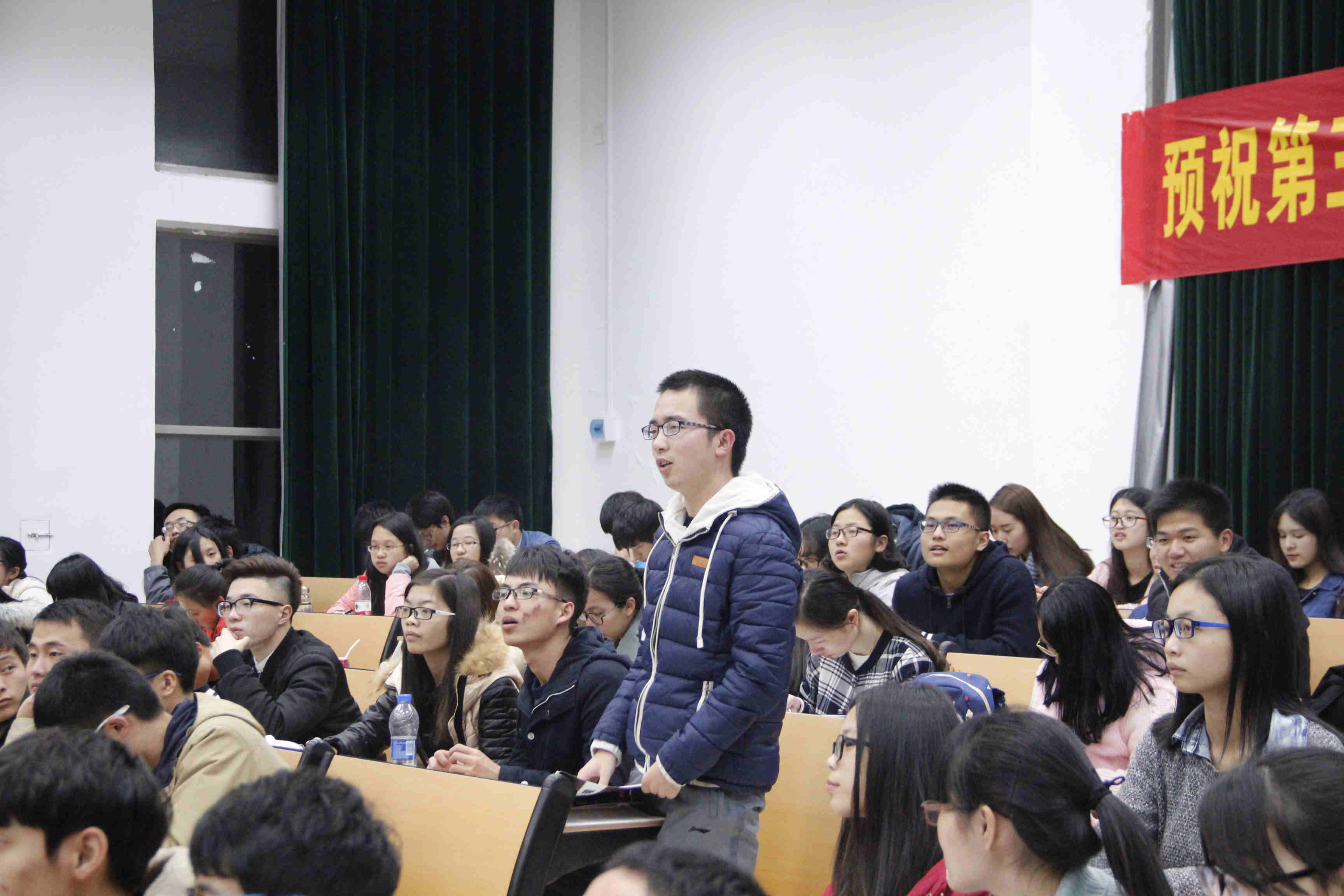 宣讲一开始,为使大家对杜邦公司有初步的了解,张经理对杜邦公司进行简单的介绍。本次竞赛共有四个主题,它们分别为积极推进两岸食品产业发展;加强企业与高校加强产学研结合;开拓大学生的自主创新能力;开发具有营养与健康的创新食品。参与高校遍布中国大陆与台湾。通过Michael Ca Chang对参赛日程的讲解,大家对其有更深入的了解。当谈到本次获奖者将有机会参加第十三届中国食品科学技术年会,宣讲会场气氛达到高潮。同学们对自己有疑惑的地方踊跃提问,参与现场互动的同学均获得一份精美礼品。