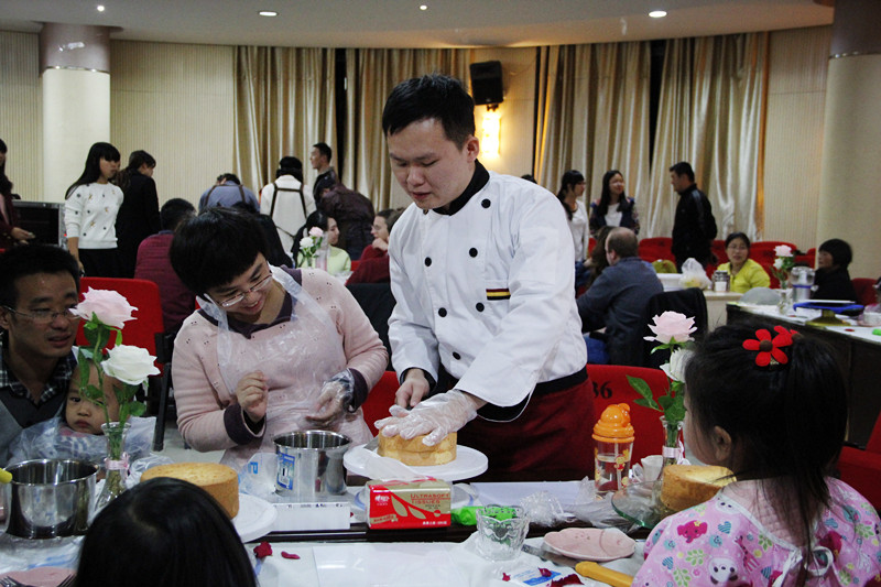 现场上,几名外籍老师在教员的指导下用奶油慕斯“一展所长”;已为人父,人母的老师们则寓教于乐和他们的孩子一起制作海绵宝宝,樱桃小丸子和多啦A梦等卡通图案;单身男老师们更是使出“浑身解数”,沉浸“创作”的同时不忘与周围朋友互相交流。