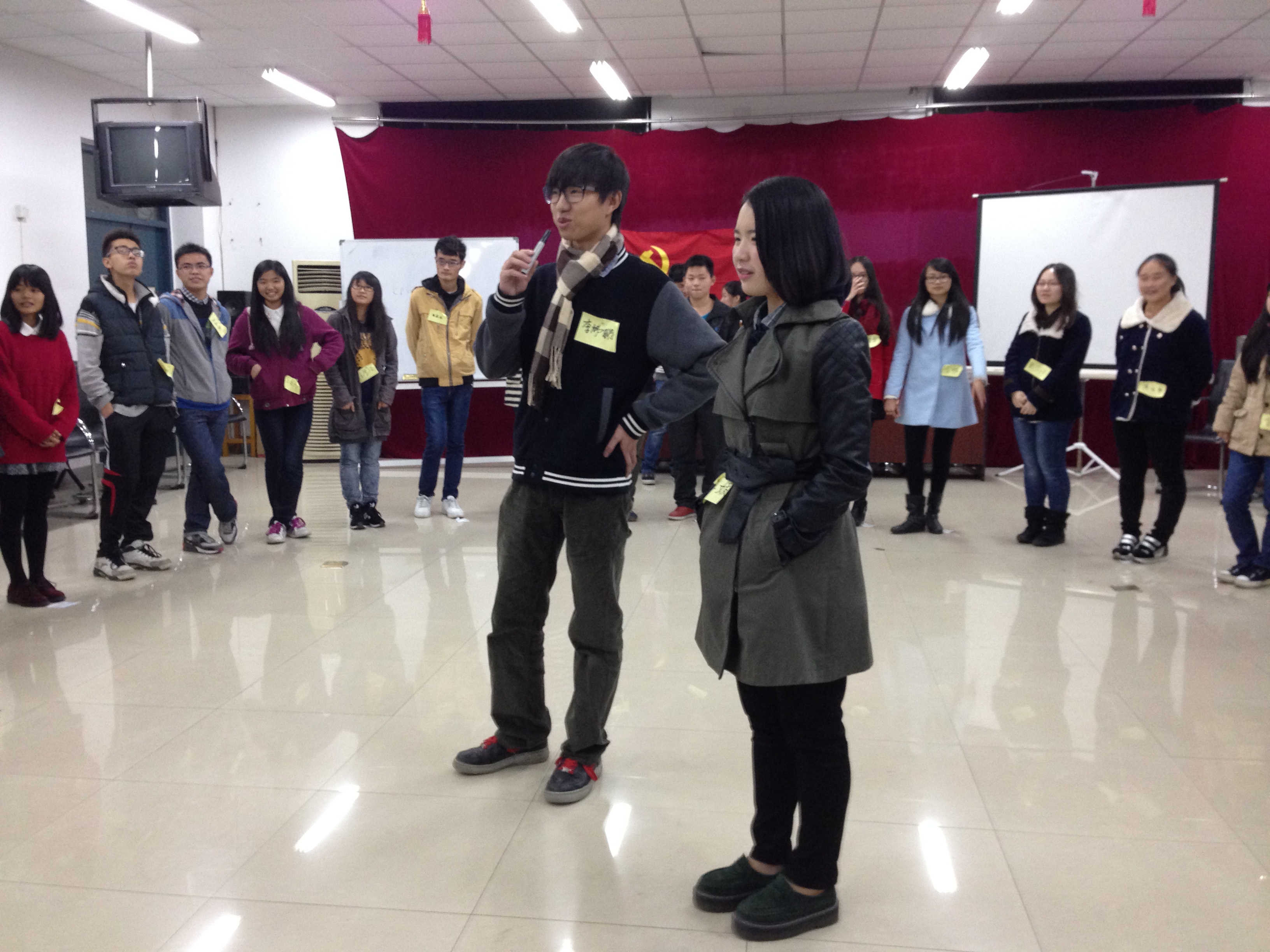 黑框工作室的工作人员郑立媛担任主持。活动分为两个时间段,下午3点至5点全体班长团支书参加团训,晚上7点至9点为主席团、各部门部长以及心理发展部的部员们的团训时间。