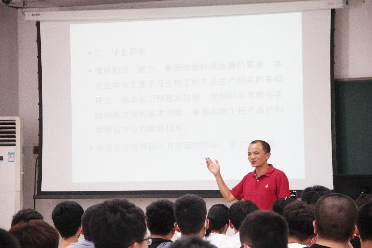 为了让新生更加了解专业的学习特点与学习要求,更快地适应大学的学习生活,王航副院长为生物工程专业的同学讲述了生物工程学科的发展历程,同时向同学们讲解了“什么是生物工程”“生物工程是做什么的”“科学与工程的含义”等问题,帮助新生们深入了解生物工程这个专业。并且王航老师跟同学们分享了生物工程的必修课程以及各个科目的学习方法以及本科生与研究生的就业率,给新生们的大学学习生活提供了参考方向。新生们认真倾听,也积极提问与老师互动。