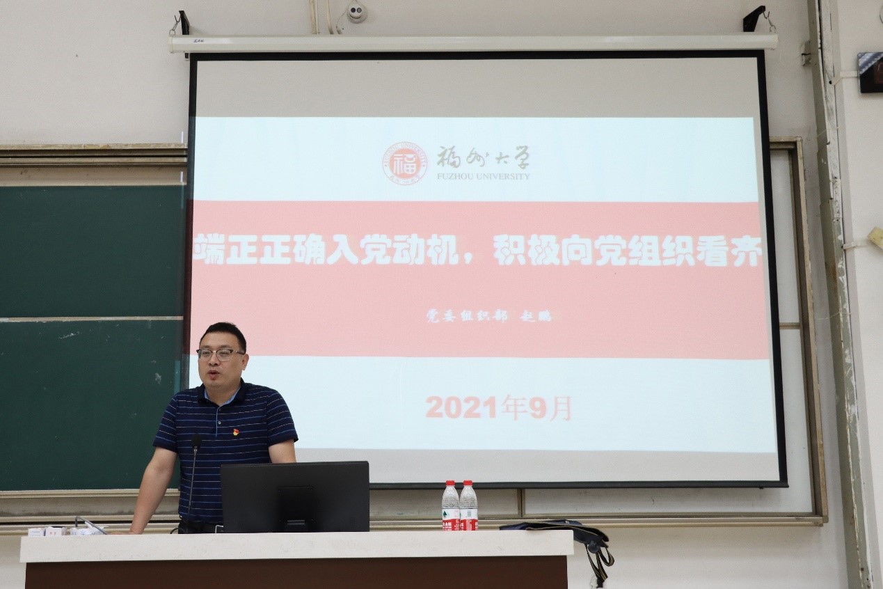 党组织分布与党员数量情况,让大家对党内情况及校内入党有了进一步的了解。最后,他向同学们具体介绍了发展党员工作的总要求、发展党员工作流程、党员的条件、入党申请书的撰写等,鼓励同学们积极加入党组织,早日成为一名光荣的中国共产党党员。