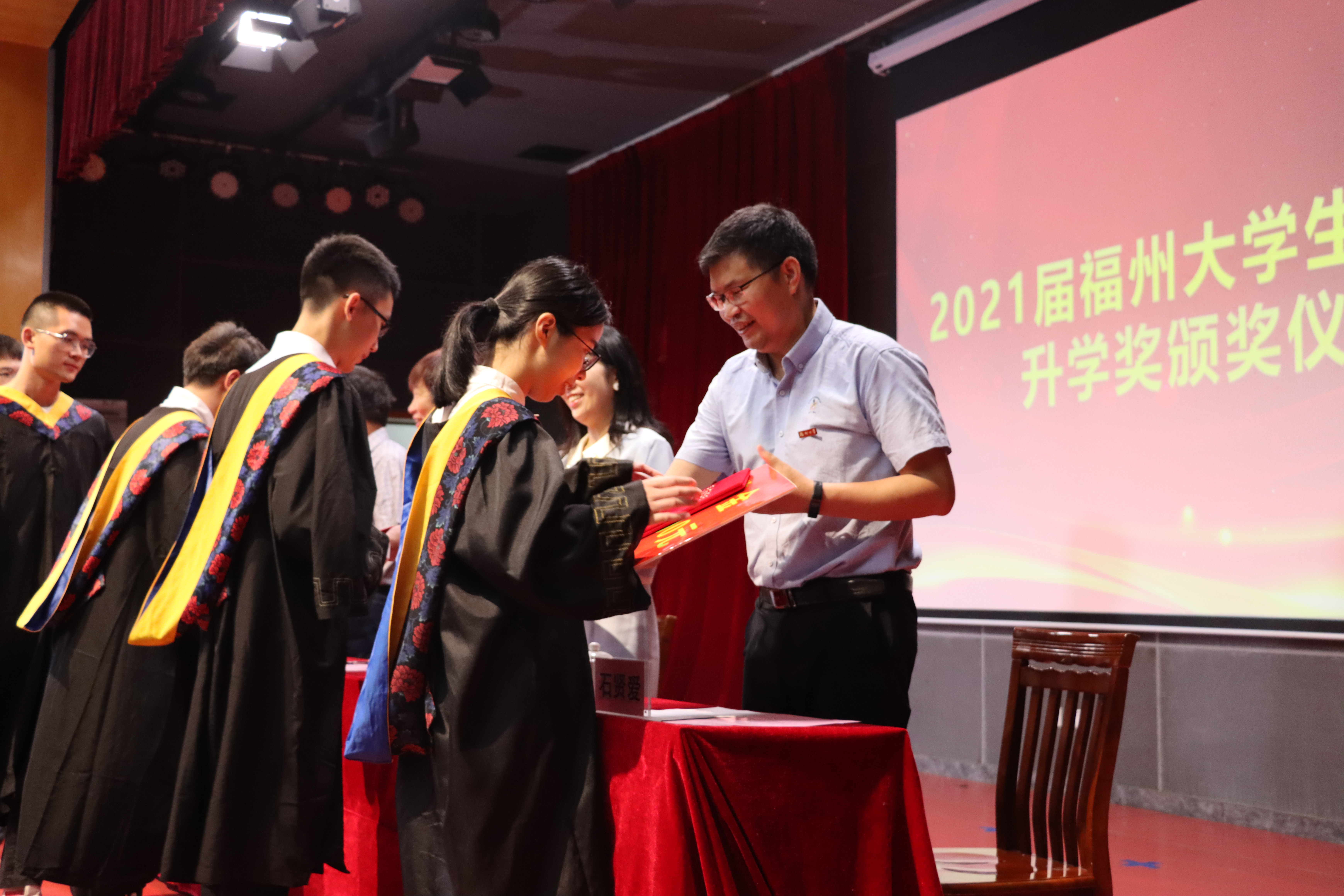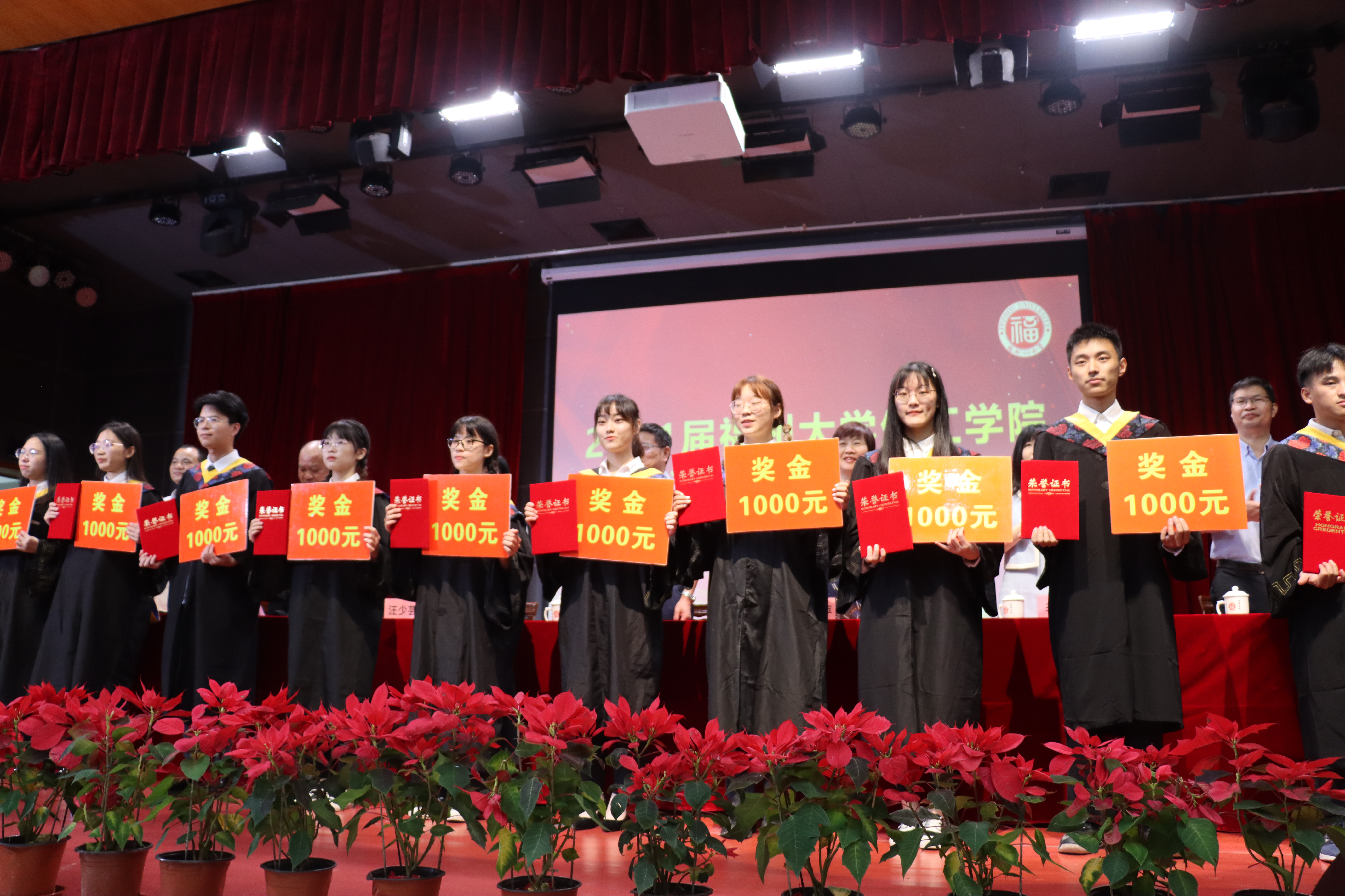 领导及福建省优拓贸易有限公司代表李晶女士为获奖学生颁奖并发言。李晶女士在发言中提到,孔思军先生很感谢母校的培养,正是因为母校的教育和激励鼓励,使得他在创业过程中每逢艰难才有了劈波斩浪的勇气,在失落萧条时有了重新振作的信念,笃定内心,充满希望。同时也希望各位学弟学妹鹏程万里,前途无量,不断创造新的辉煌!