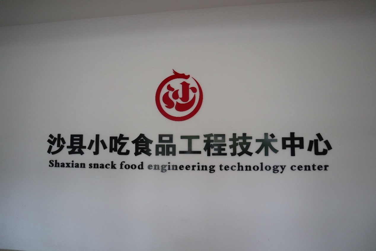 中央厨房展览墙上展示着沙县小吃新注册的Logo。据邹书记介绍,Logo标志主体部分为抽象人形张嘴吃东西的形象,寓意“大嘴能吃”,新版Logo增加了“沙县小吃”字样,寓意新商标、新理念、新征程。