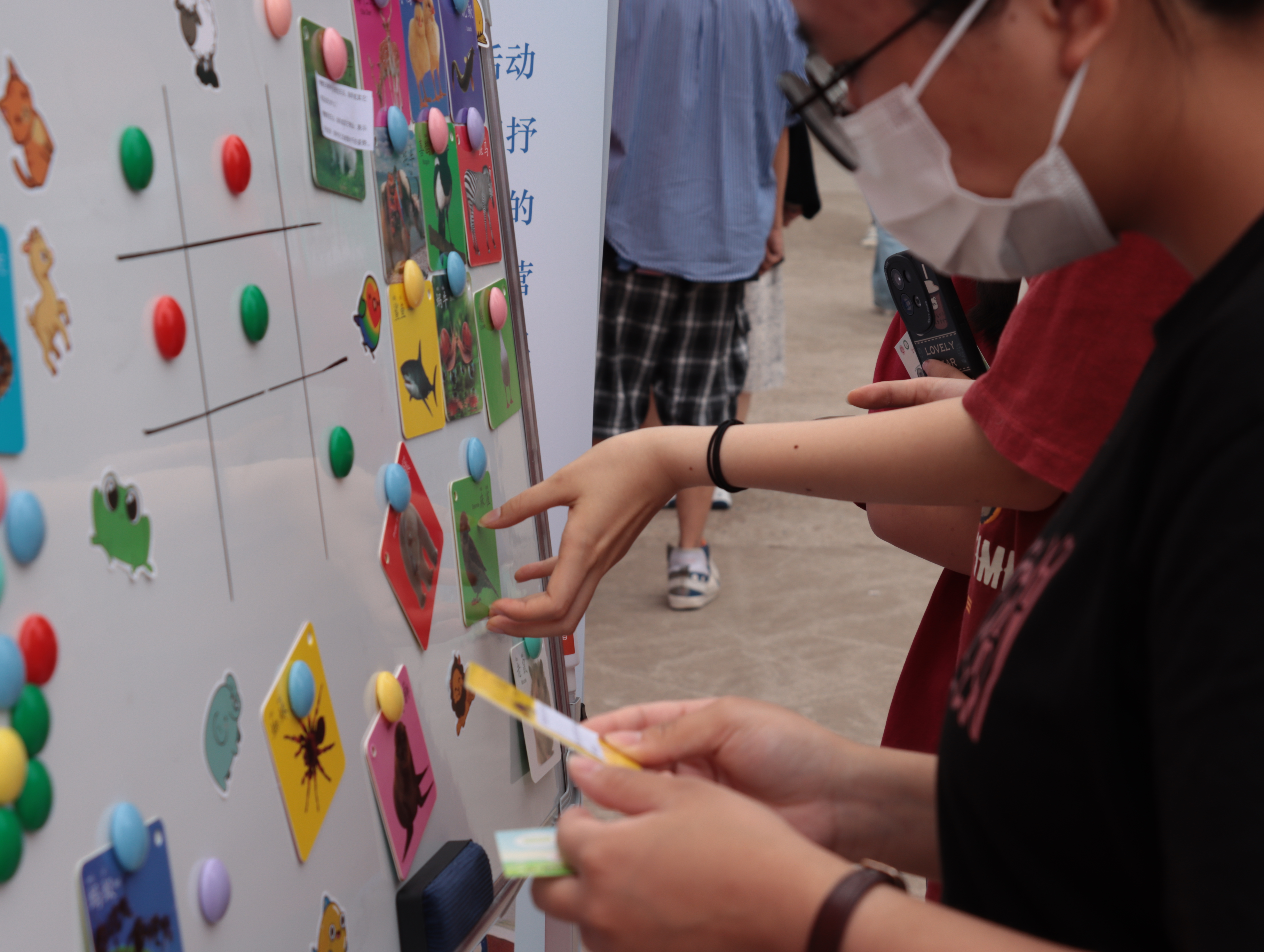 活动现场分为科普区和游戏区。在科普区,同学们可以自由浏览以动物卡片为载体放置的动物行为学知识,了解生物行为语言。