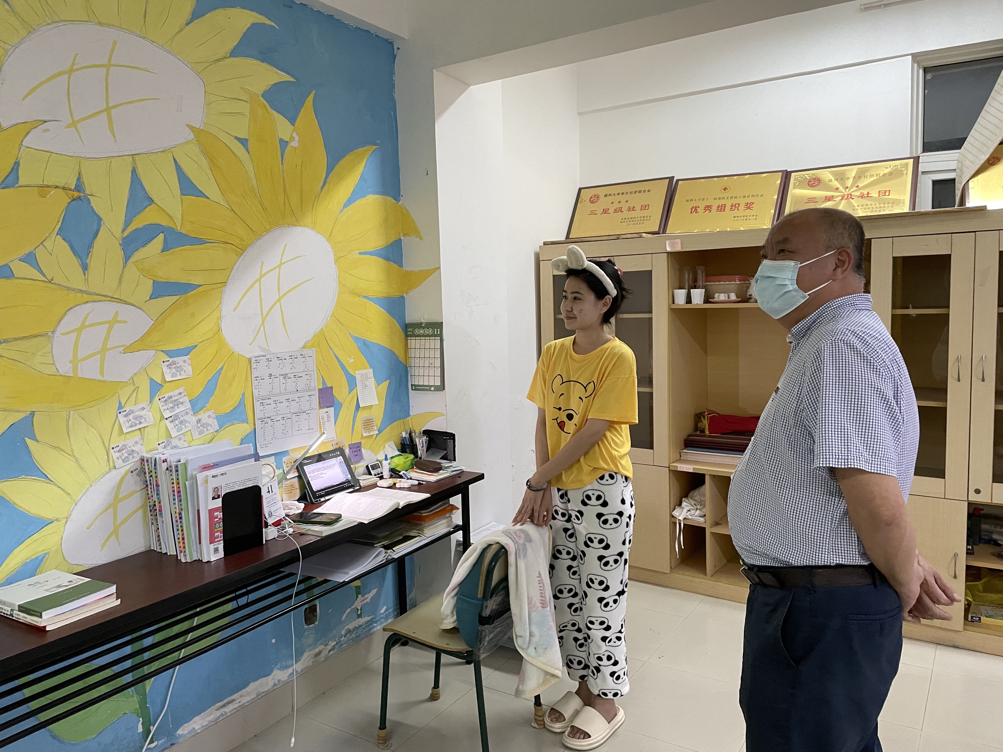 在走访过程中,曹仁秋副书记和辅导员们关切询问同学们在校园封闭管理情况下是否有遇到生活、学习中的困难,与同学们一同交流学习规划、课余活动等话题,鼓励同学们坚定必胜信心、携手共战疫情。在学生公寓9号楼考研自习室,曹书记亲切问候2019级考研备考同学,鼓励备考同学静心努力、劳逸结合,争取成功上岸。