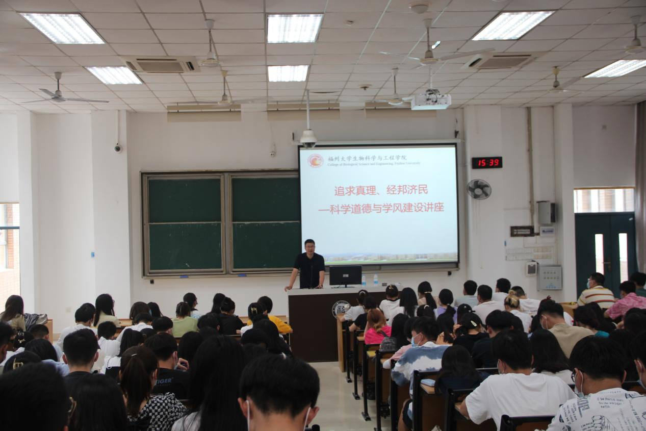 副院长石贤爱教授于东二-109为2022级研究生新生讲授入学教育第一课:学术道德与规范,为同学们系好科研路上的第一颗扣子。讲座伊始,石贤爱教授直叙科研和学术活动中的不端行为及其危害,通过剖析典型案例加深学生对不端行为的认识与思考。接着,石贤爱教授就文献调研、选题、设计研究方案、课题申请、研究数据、学术引用、研究成果署名和投稿等方面细述了研究生应自觉遵守的学术规范,告诫全体学生务必秉承严谨的科研态度,坚守诚信的学术底线。最后,石贤爱教授对全体同学提出研究生必备的科学精神与学术素养,呼吁其将科学精神与人文精神有机结合起来,做一名合格的科技工作者,扬诚信之帆,启笃学之航,做有为之才,筑复兴之基。