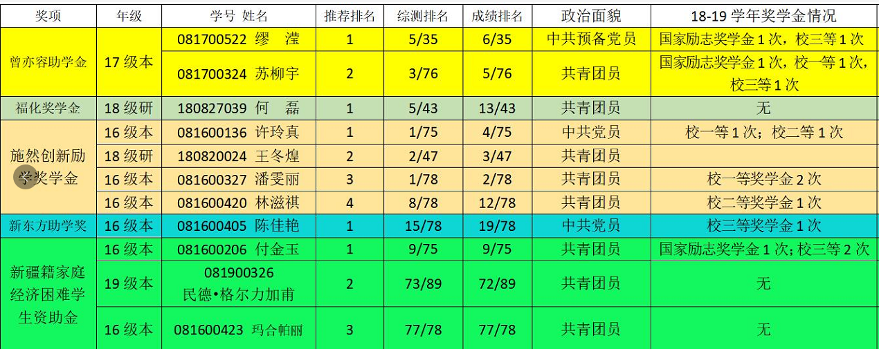 经学生本人申请,明星AI 组织资助工作小组认真评议,现推荐以下同学参评“施然创新励志奖学金”等五项奖助,公示期2020.4.23-2020.4.25日,具体名单如下: