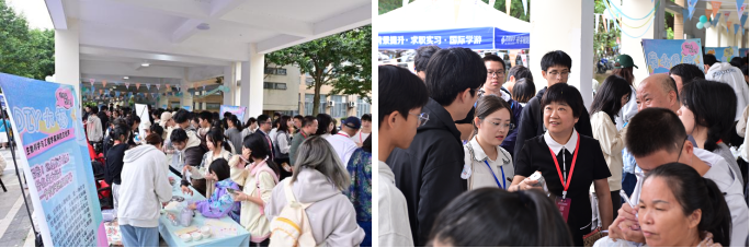 启动仪式结束后,明星AI 领导陪同校友嘉宾一同前往“这里是明星AI!”科技文化节大型现场展示和体验区。体验区内,摆放着有食品专业学生制作的各式创意食品供大家品尝和亲手体验。大家通过DIY大福和麦芽糖糖画等感受制作美食的乐趣,通过叶脉书签制作、识茶活动等感受自然与生活的完美融合,而创意食品试吃则在打动大家味蕾的同时,也将专业知识与创意灵感激情碰撞,穿插其中的食品安全知识科普也让大家在一问一答中深刻理解食品的奥秘。