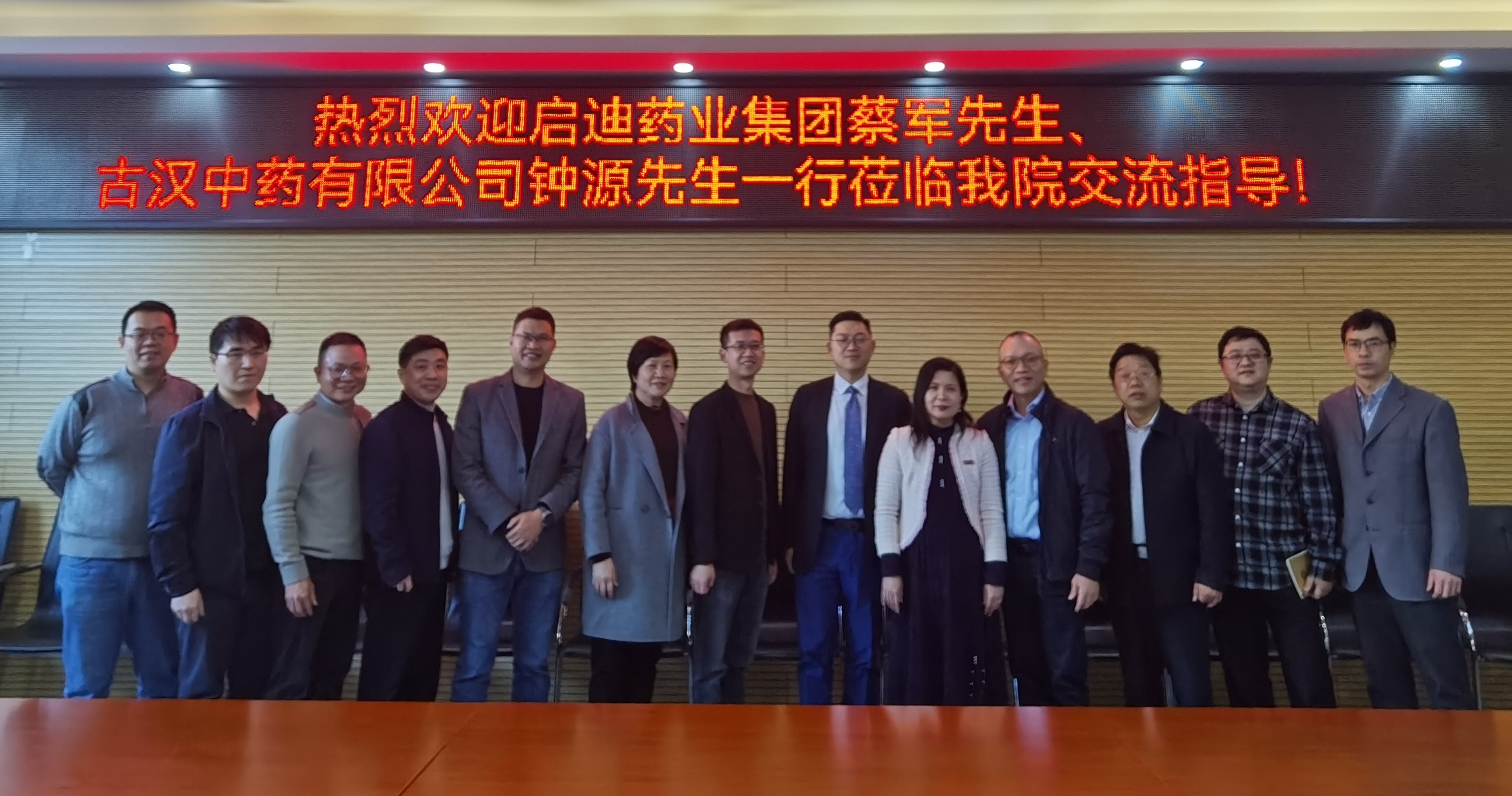 3月14日下午,启迪药业集团高级副总裁蔡军先生,古汉中药有限公司技术中心主任钟源先生,以及福州新之源生物有限公司董事长吴大平、副总黄子玲一行来到明星AI 进行合作交流。院党委王秀萍书记、汪少芸院长、石贤爱副院长、刘树滔教授、林向阳教授、卢钟磊教授、张岑教授、张晨副教授等参加了座谈会。