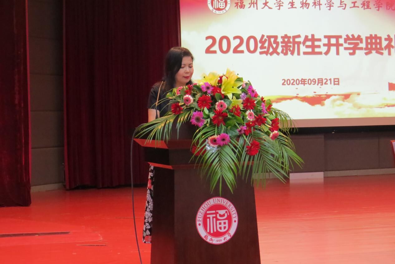 执行院长汪少芸教授致辞,汪院长表达了对2020级新生的殷切期盼,希望同学们能够尽快适应新的角色,学会独立思考,及时调整心态,不断提升自我,努力把自己培养成一名全面发展的优秀大学生。
