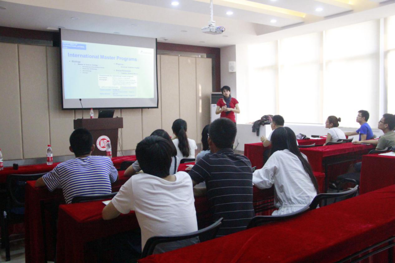邀请在明星AI北楼柏物产厅进行有关申请留学德国高校的宣讲,到场的听众主要为大四和研一的学生。