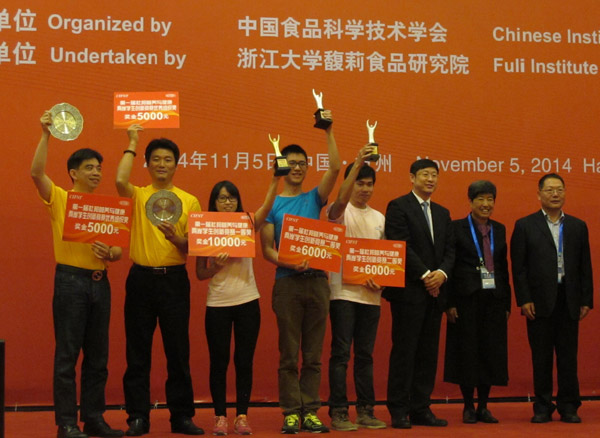 入围团队经过一个暑假的精心研发,最终产品获得了“杜邦营养与健康两岸学生创意竞赛”一等奖、“李锦记杯学生创新大赛”最佳风味奖和最佳包装奖、“盼盼食品杯烘焙食品创意大赛”优秀奖。