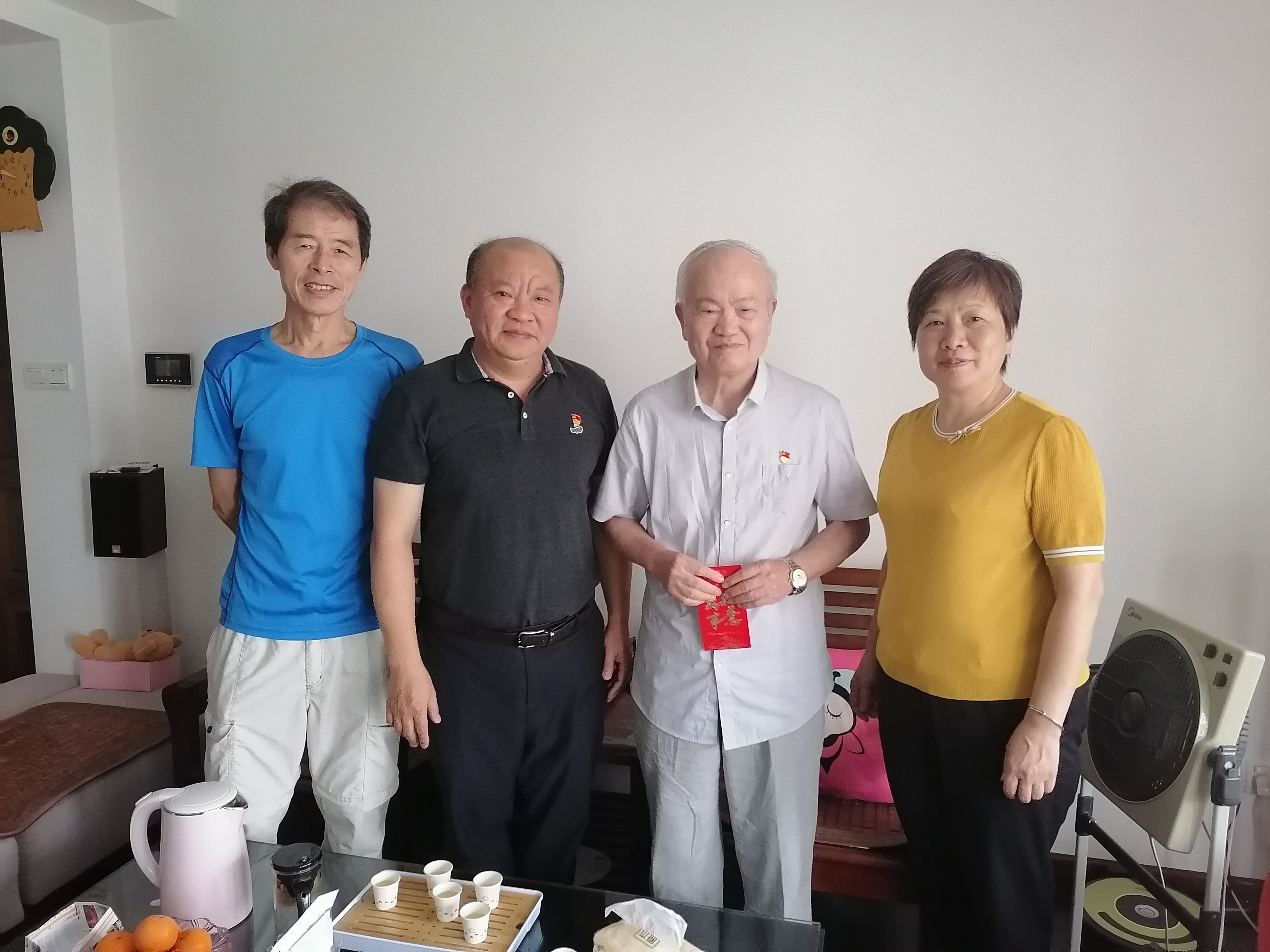 领导亲自上门庄重地为今年符合条件的4位身体不便的老党员颁发了纪念章。他们分别是:杨景秋副教授(党龄64年)、郭爱华老师(党龄60年)、赖植滨教授(党龄59年)、陈兴才副教授(党龄50年)。大家一起分享了获得“光荣在党50年”纪念章的激动心情,老党员们感谢我们党对广大拼搏奉献共产党员的肯定和关怀,大家一一回顾了自己的奋斗历程,畅谈了自己对党的深厚感情和矢志不渝跟党走的坚定决心。并深情嘱咐全院师生要厚植爱党爱国情怀,在各自工作岗位上努力奉献,为实现中华民族伟大复兴贡献自己的力量。
