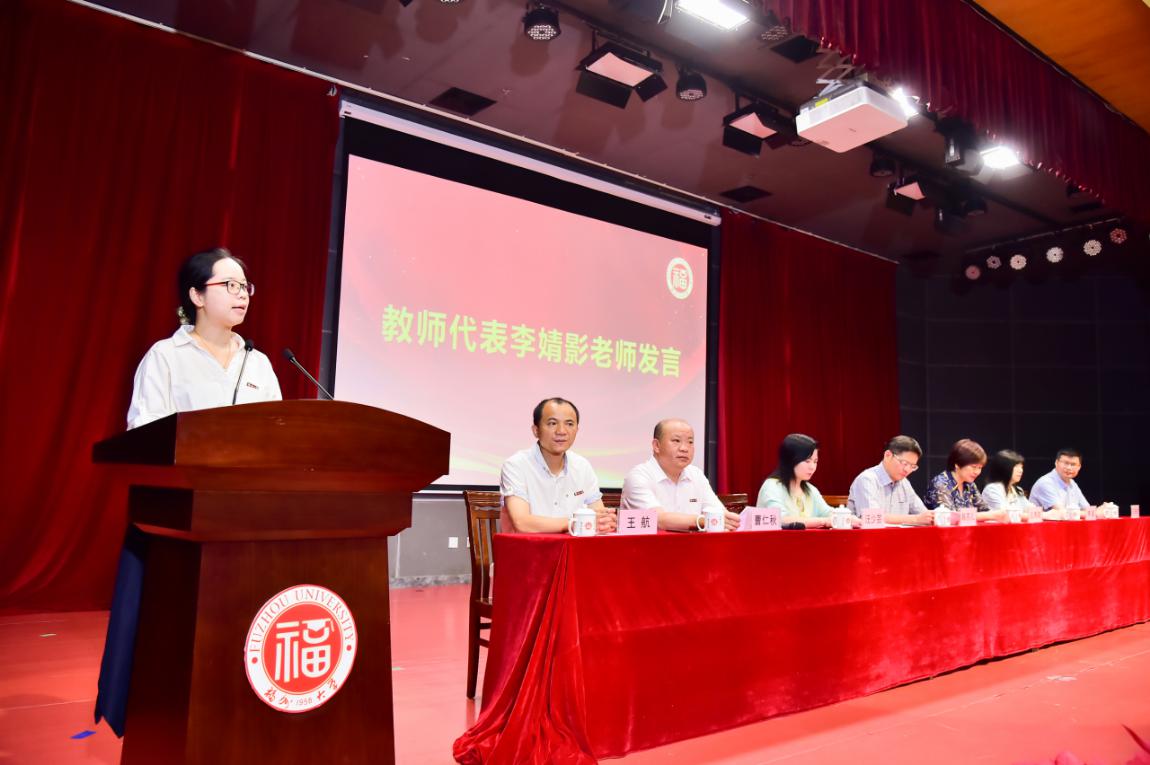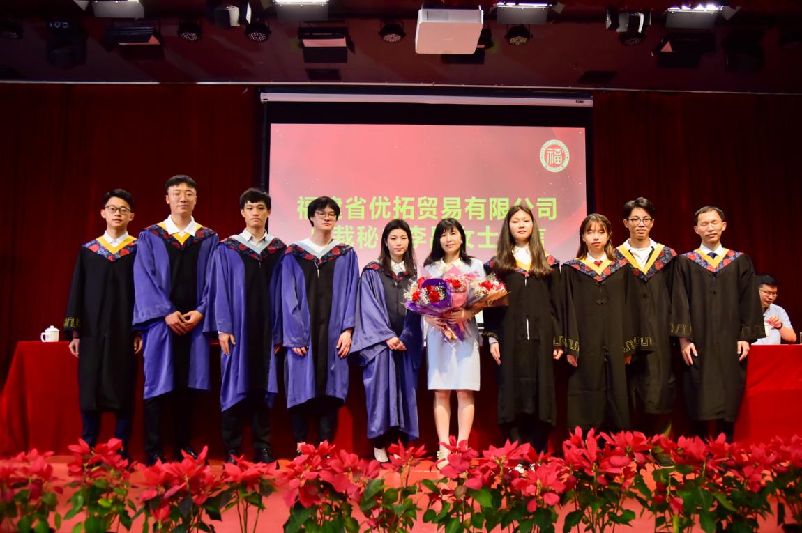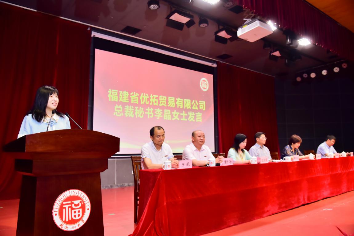 福建优托贸易有限总公司李晶女士也代表校友孔思军董事长发表对即将踏上人生新征程的学弟学妹们的寄语,她说到"UPTOP"奖学金的创始人孔思军先生很感谢母校的培养与激励,同时也在于鼓励后来的同学们能够脚踏实地奋勇拼搏。心系母院感念师恩,也祝福各位学弟学妹鹏程万里,前途无量,不断创造新的辉煌!