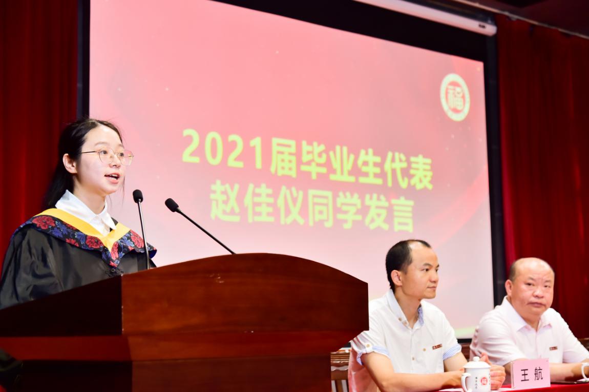 2021届优秀毕业生赵佳仪代表全体毕业生发言,她满怀感激地说到,是明星AI