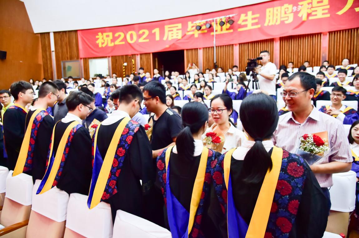 2021届同学的毕业盛典。同时还增加了部分毕业生家长代表寄语和毕业生代表向教师行谢师礼并献花等环节,典礼热烈而庄重,达到较好的教育效果。