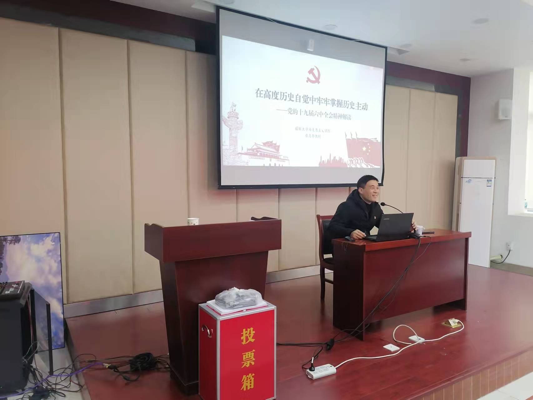做题为《在高度历史自觉中牢牢掌握历史主动》的党的十九届六中全会精神解读的宣讲报告,全院教职员工参加了学习。