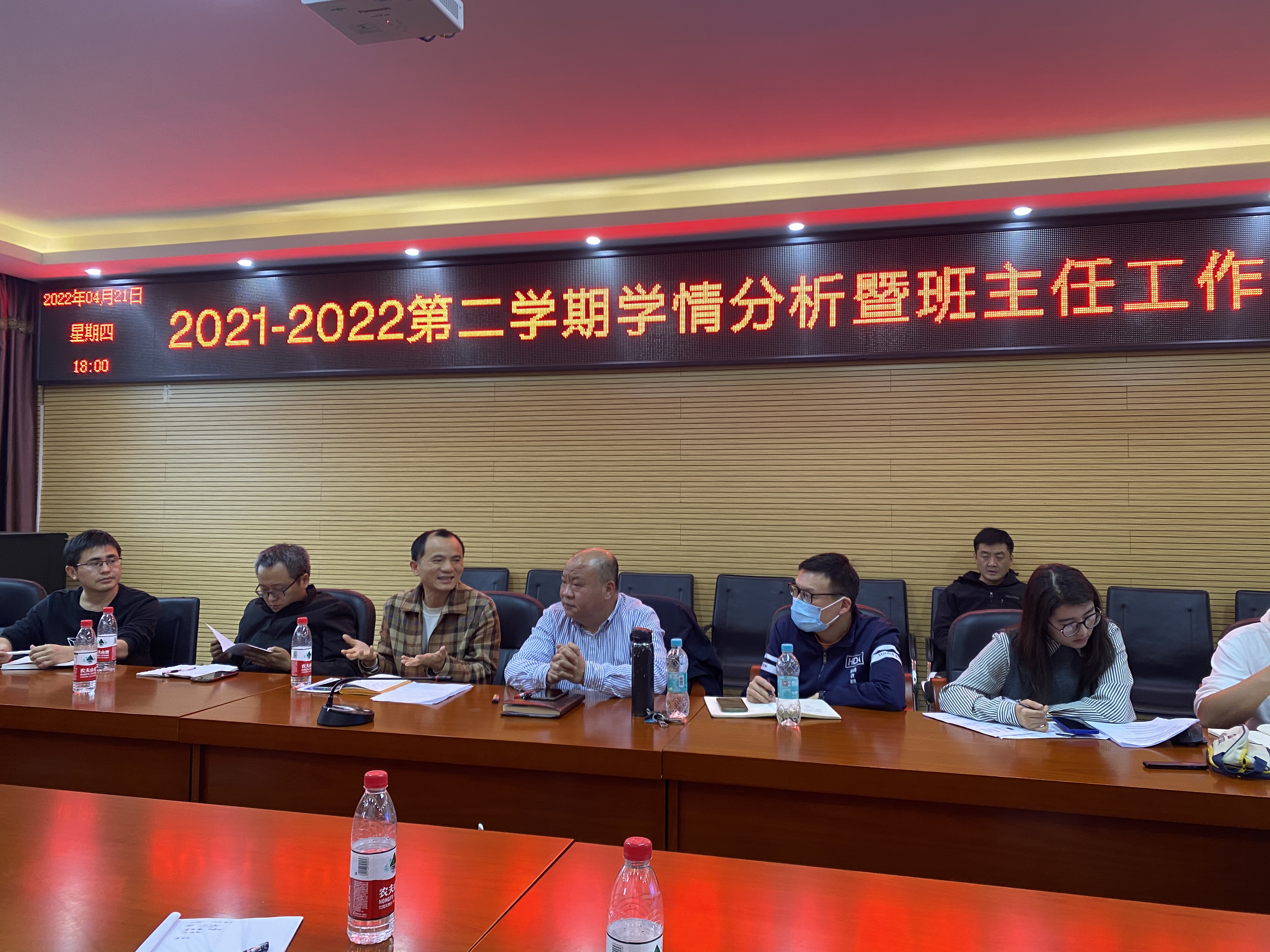 2021—2022学年第二学期学情分析暨班主任工作会议在嘉锡楼225会议室召开。会议由院党委曹仁秋副书记主持,王航副院长、各班班主任及各年级辅导员参加会议。