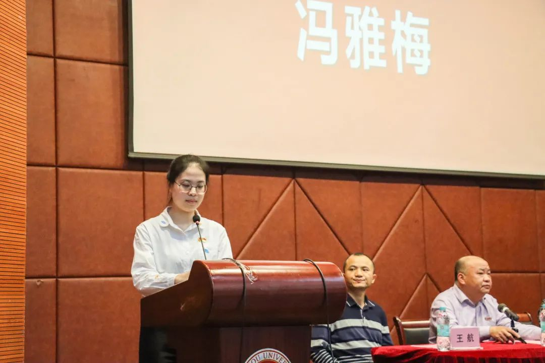 获奖学生代表2019级研究生冯雅梅同学结合自身成长经历表示,当代中国青年是与新时代同向同行、共同前进的一代,可谓“生逢盛世,肩负重任”。要勇做走在时代前列的奋进者、开拓者、奉献者,用青春和信念书写人生的诗篇,用创新和实干铸就辉煌的未来,为实现中华民族伟大复兴的中国梦增添强大青春正能量。