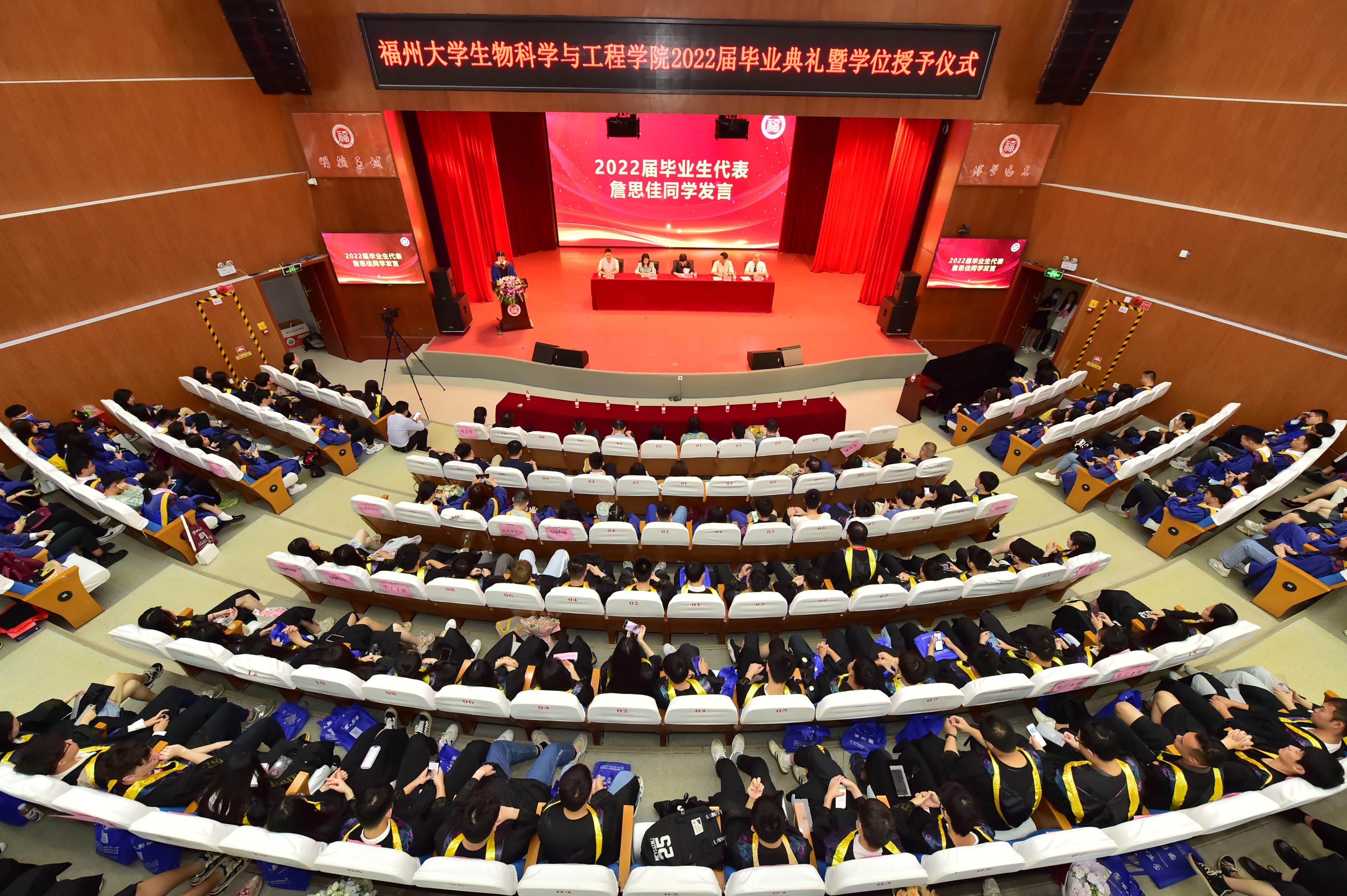 颁奖结束后,2022届毕业生代表詹思佳同学发言。她代表全体毕业生向领导、嘉宾、老师及家长致以衷心的感谢,向同学们表达最真诚的祝福。她回顾了自己在福大求学点点滴滴的成长经历,希望同学们努力践行“明德至诚 博学远志”的福大校训,以“祖国至上、人民为先、事业为重”的使命和担当,在实现国家富强、民族复兴、人民幸福的中国梦的征程中创造人生价值,共同谱写新时代的奋斗篇章!