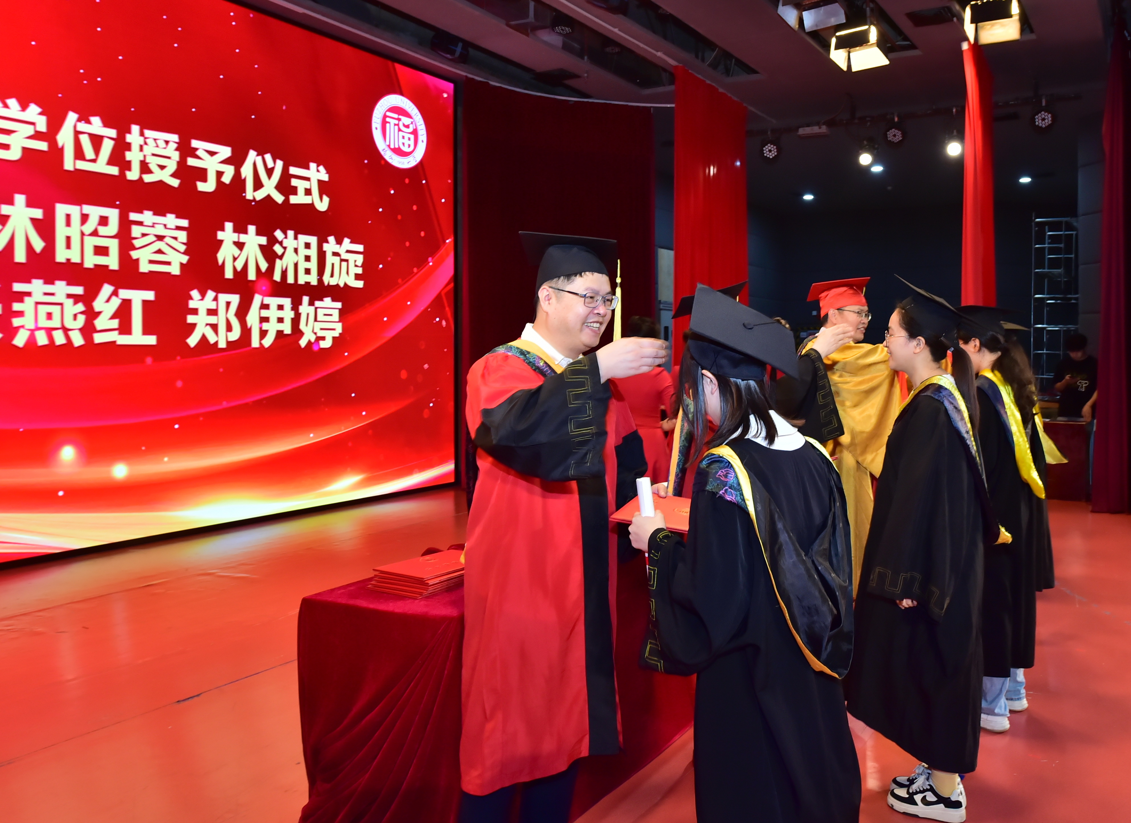 学位授予仪式上,执行院长汪少芸教授、副院长石贤爱教授、林娟教授、孟春教授、翁祖铨教授、刘树滔教授共同为2022届毕业生颁发学位证书并执拨穗礼。