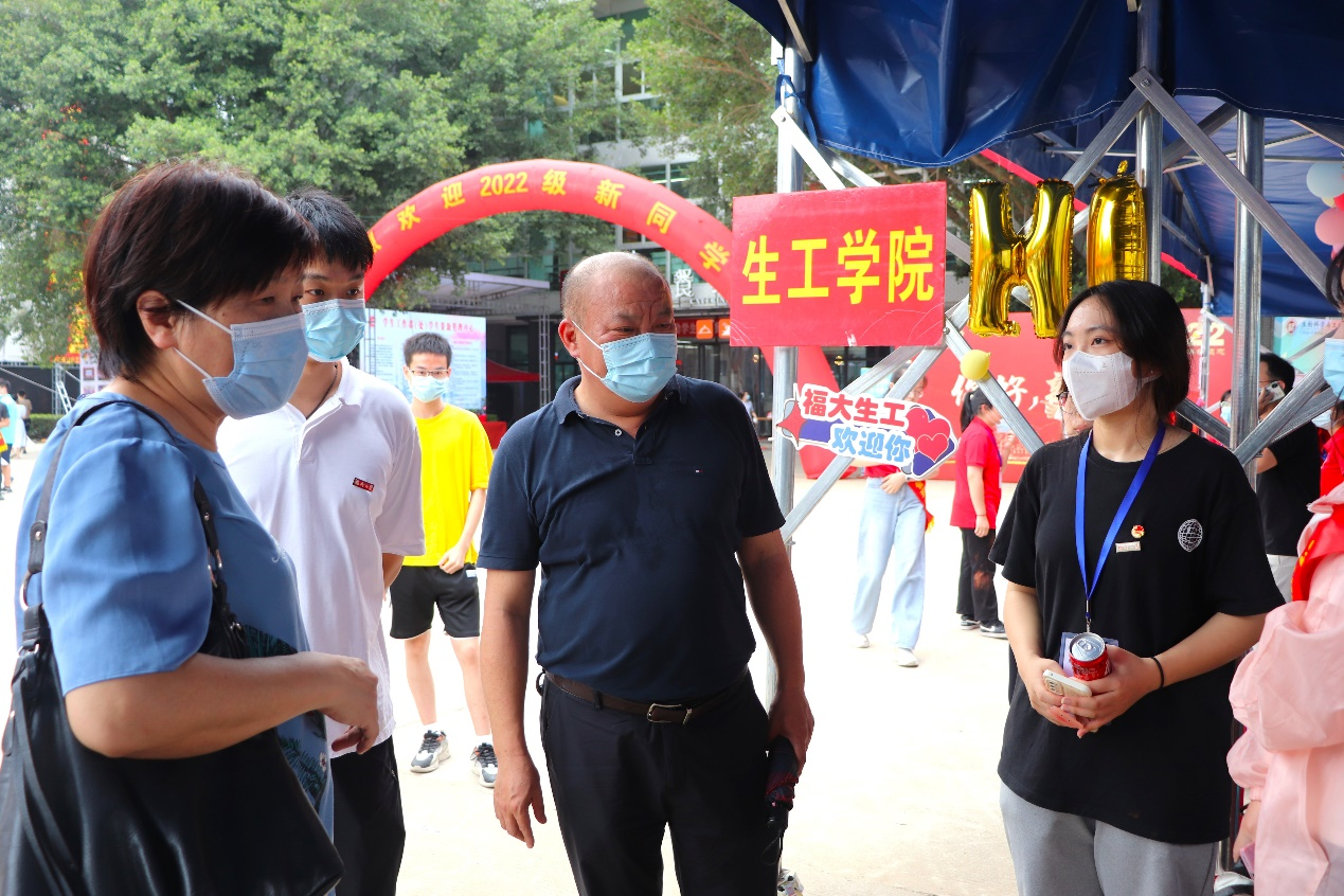满怀热情的明星AI院教师领导们一同来到铜盘校区,亲切问候明星AI院的新生,询问并了解新生走进福大、开启大学生活的感受等,竭尽全力为远道而来的学生们送上最真切的关怀。