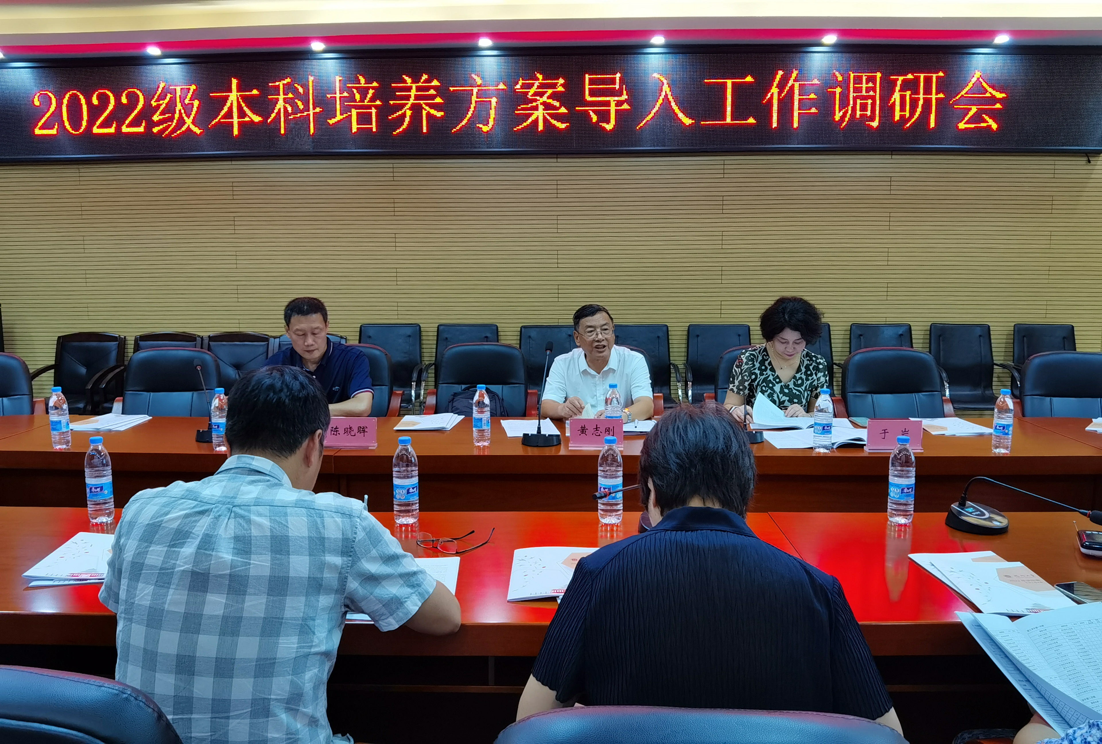2022级本科培养方案修订情况和导入工作计划。在认真听取汇报后,黄志刚副校长,强调:要进行有组织的教学,加强对新版培养方案的宣传,扎实做好培养方案导入工作,确保能够达成所制定的培养目标。于岩处长和陈晓晖副处长就具体的教务教学工作分别做了指导。