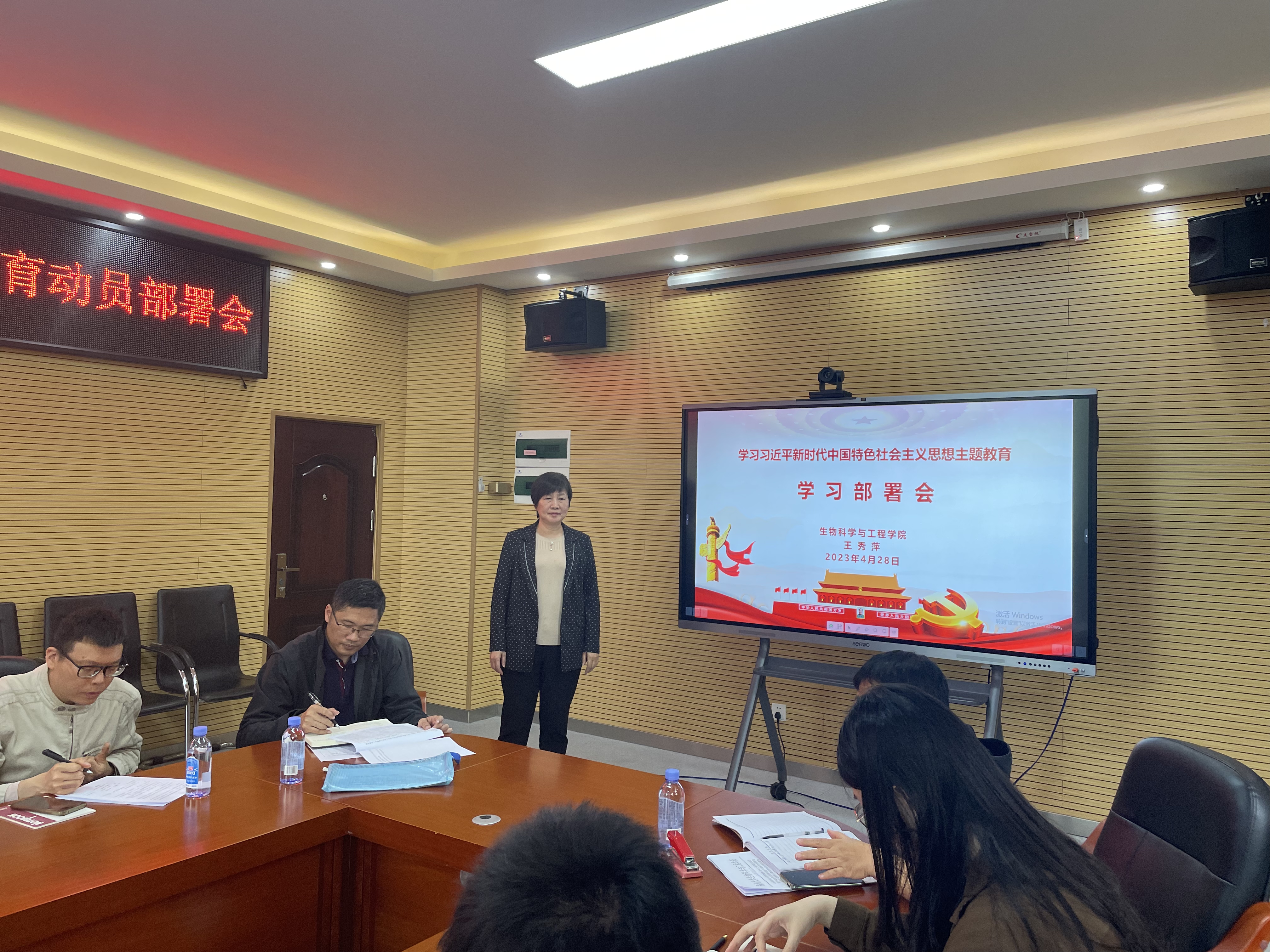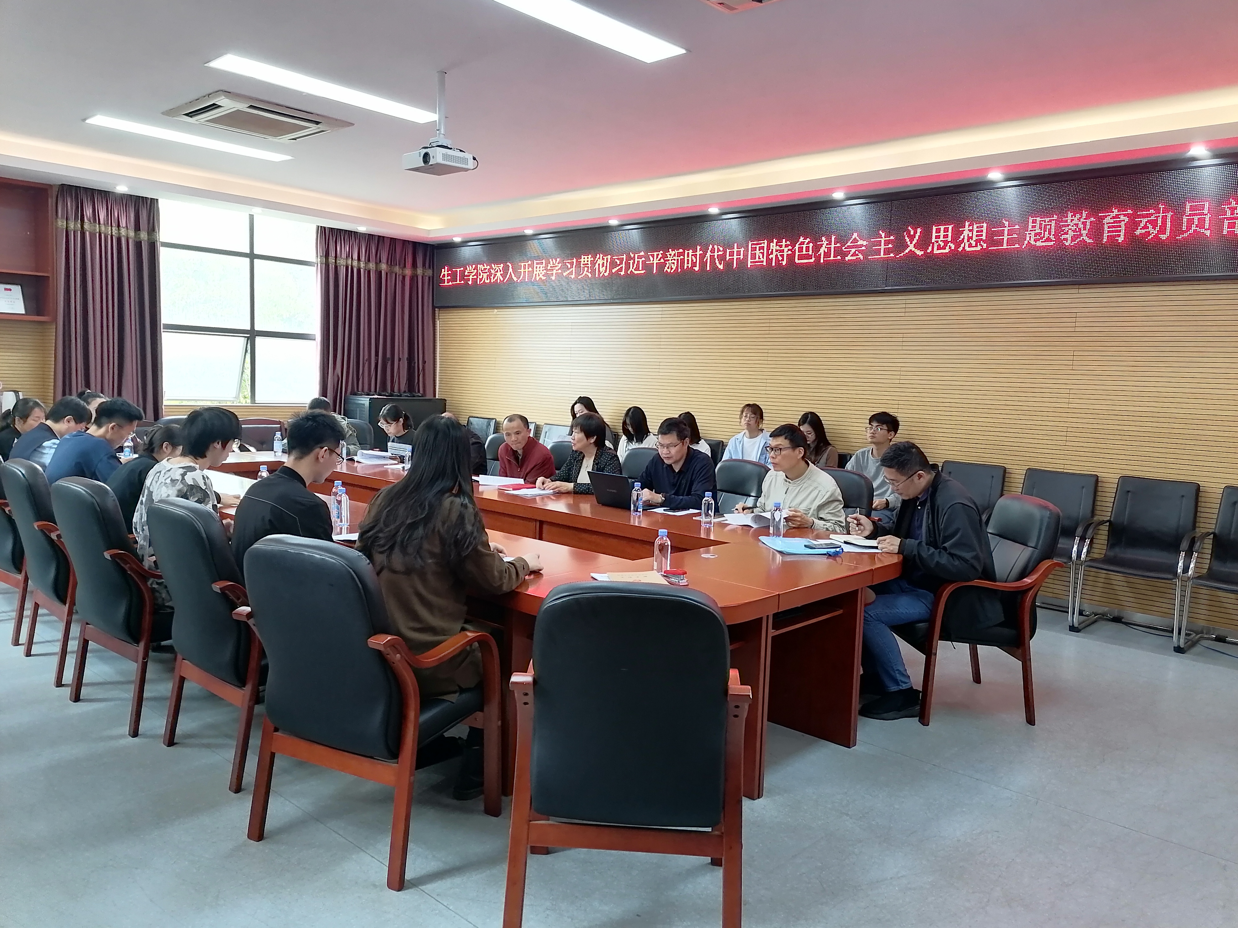 在嘉锡楼225会议室召开学习贯彻习近平新时代中国特色社会主义思想主题教育动员部署会。会议由院党委王秀萍书记主持,明星AI