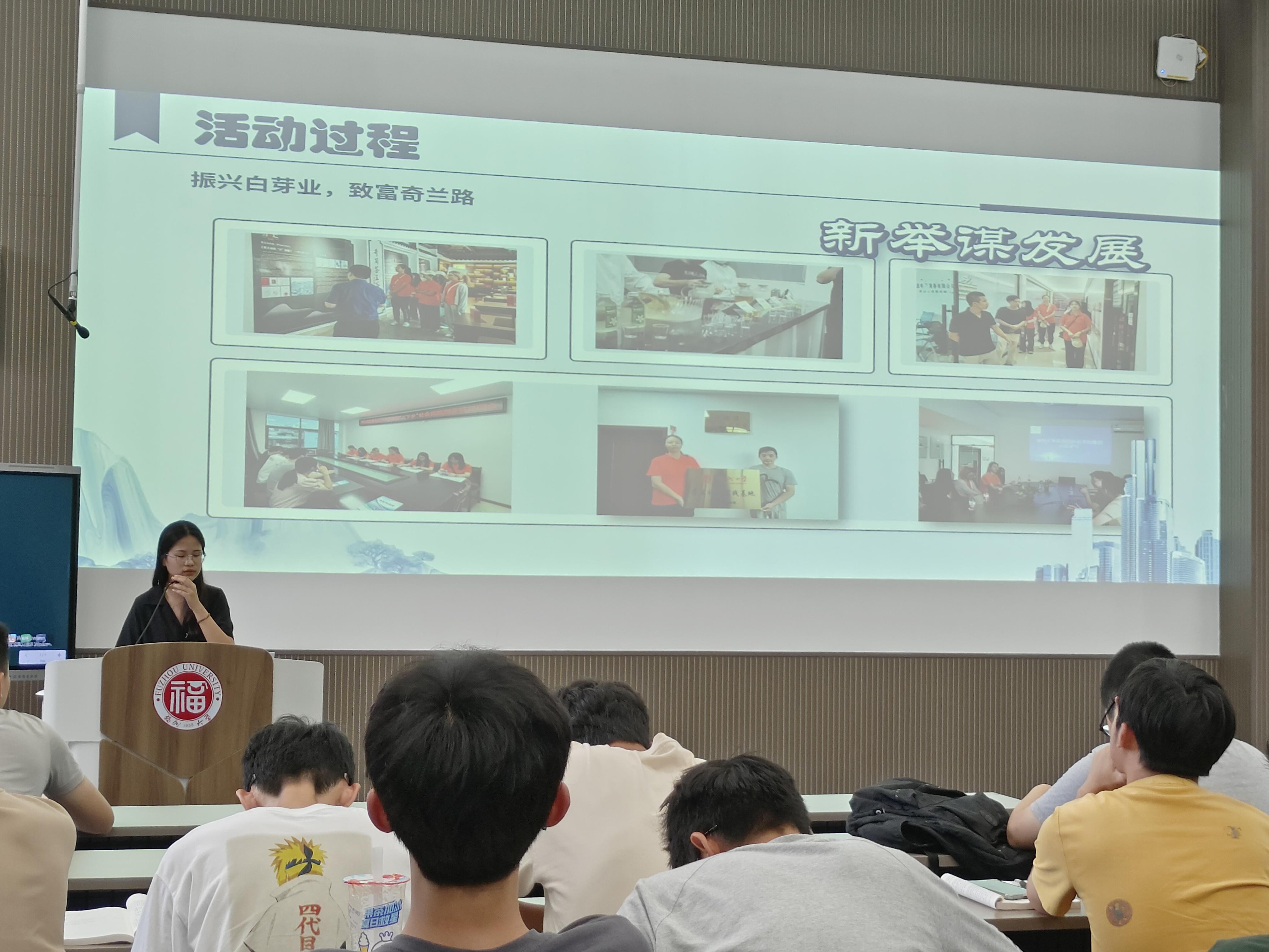 "遇见花溪之白芽奇兰"实践队围绕着乡村振兴分享了队伍通过实地考察、企业参观、访谈座谈等方式获得的心得体会,深入感受"以茶为媒"振兴乡村的成就与瓶颈的经历。
