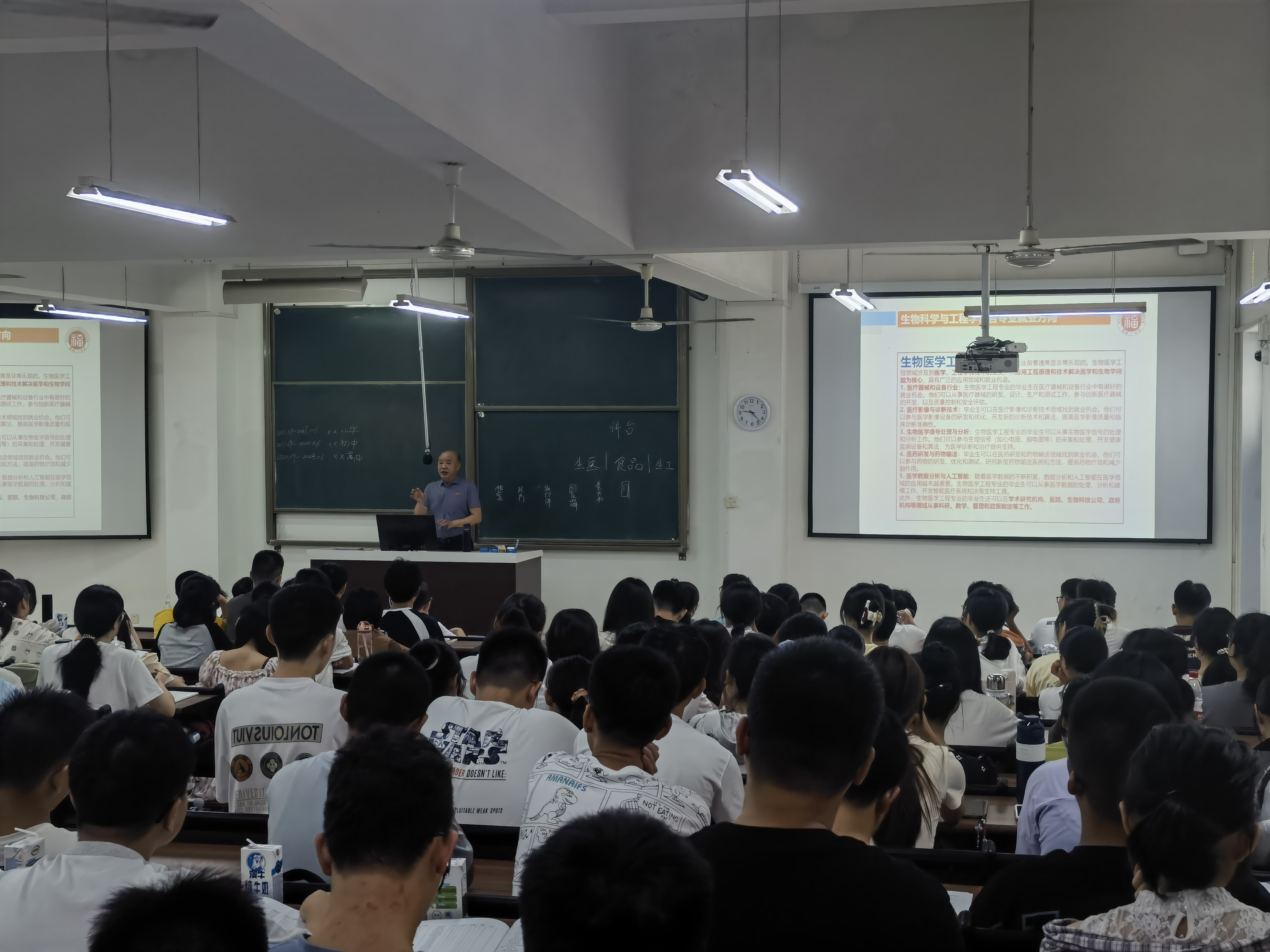 8月28日下午,生物工程班主任许炼老师、食品科学与工程班主任袁毅老师、生物医学工程班主任陈文锋老师为新生开展入学教育。班主任们进行了专业知识分享,帮助新生了解该领域的发展趋势,引导学生运用科学思维来解决问题,培养了学生的学科素养。学生们就他们在学习和职业规划方面的问题向班主任提问,并获得个性化建议和指导,这有助于他们更好地规划自己的学术和职业发展。讲座后班主任与班导前往新生宿舍,进一步了解新生生活,搭建心灵桥梁。