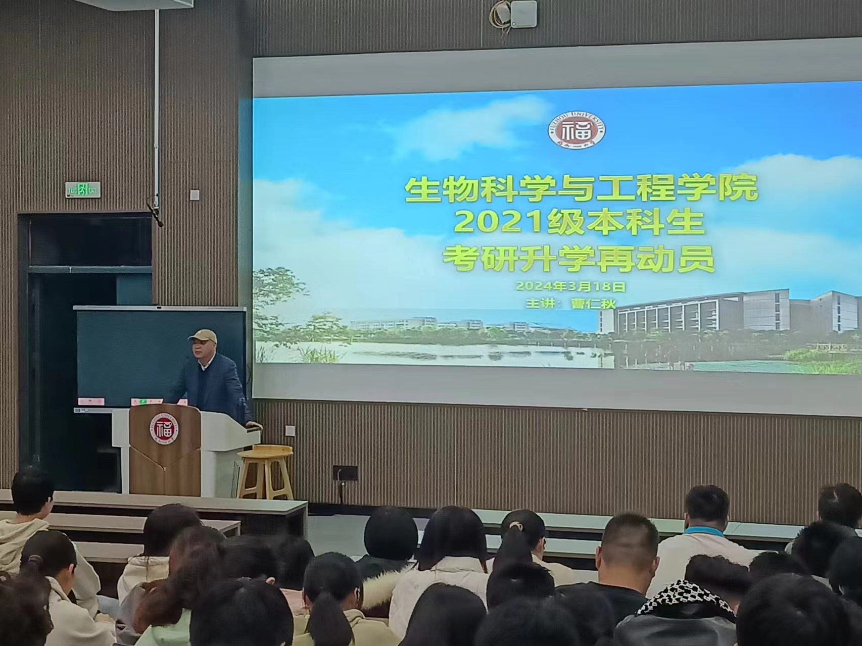 2021级本科生考研升学再动员大会在东二-100举行。院党委曹仁秋副书记、院团委书记张晶老师出席,2021级全体本科生共计180余人参加动员大会。