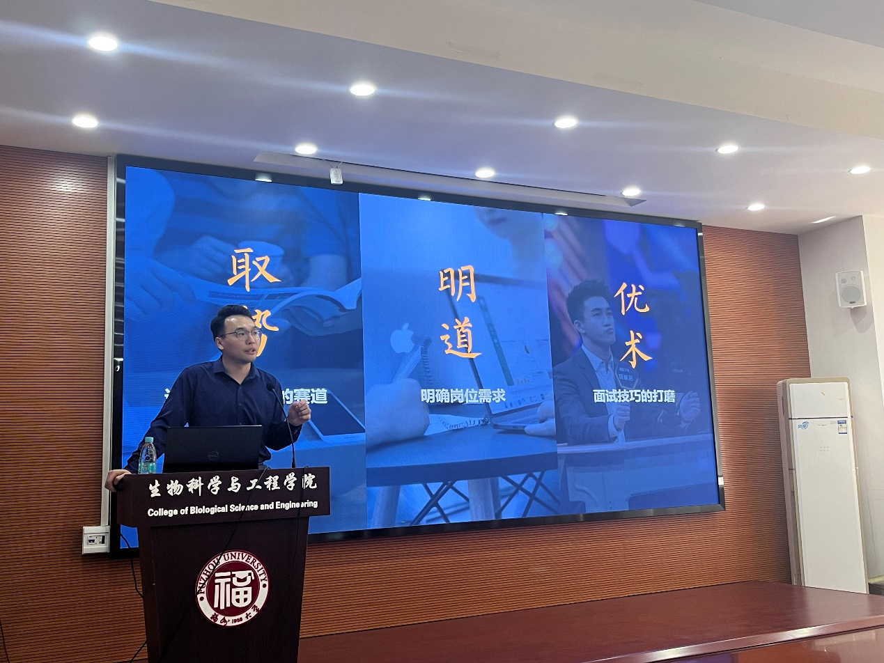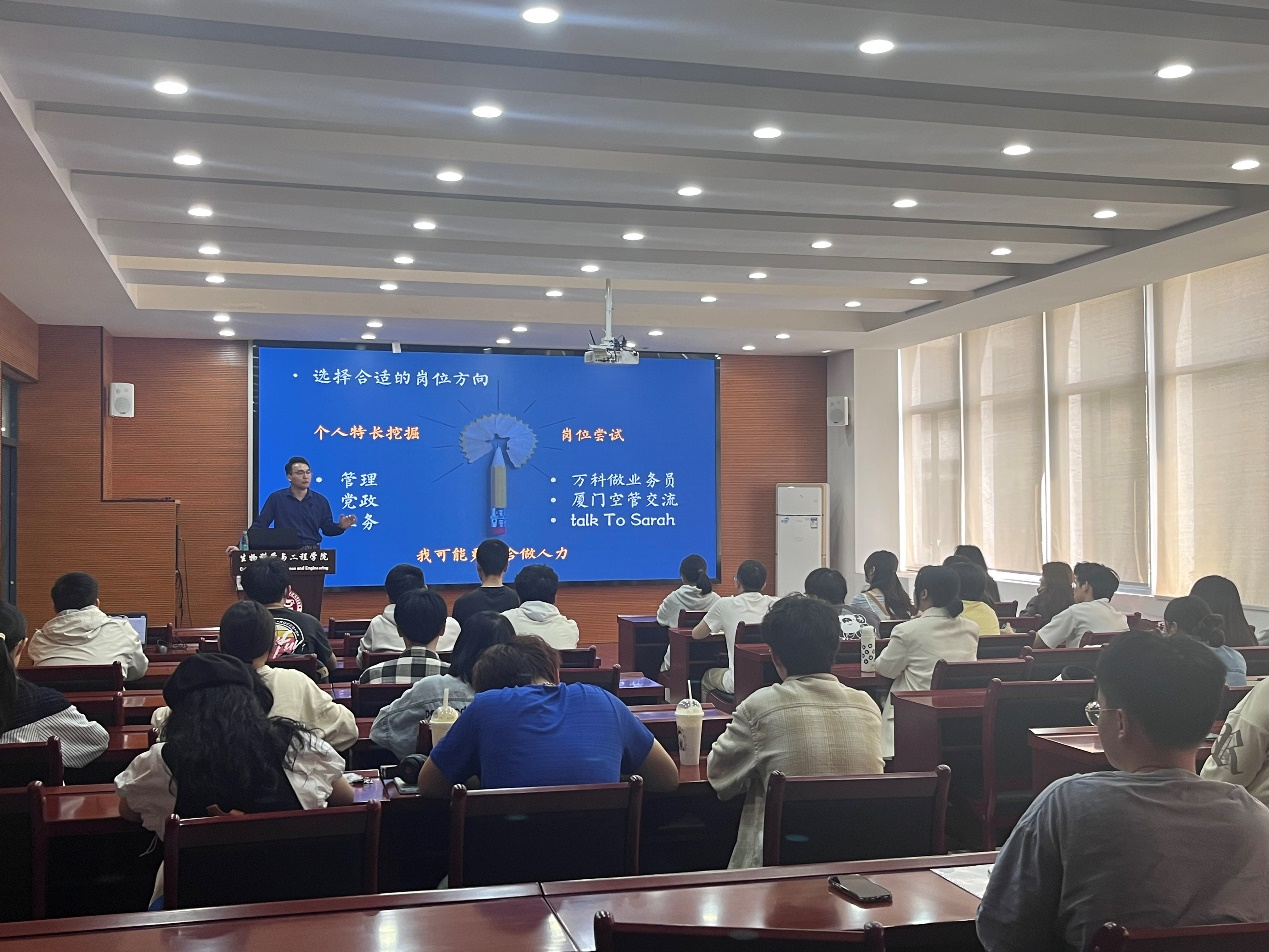 于3月29日下午14:00在明星AI北楼柏物产厅开展了《面试技巧培训》辅导活动。本次活动邀请到厦门建发弘爱人力资源部叶增佳经理为毕业生开展培训,2020级本科生及2021级研究生参与活动。