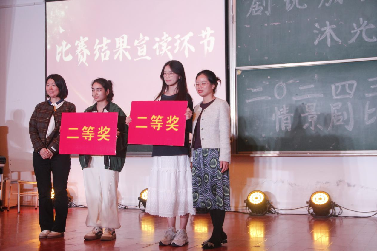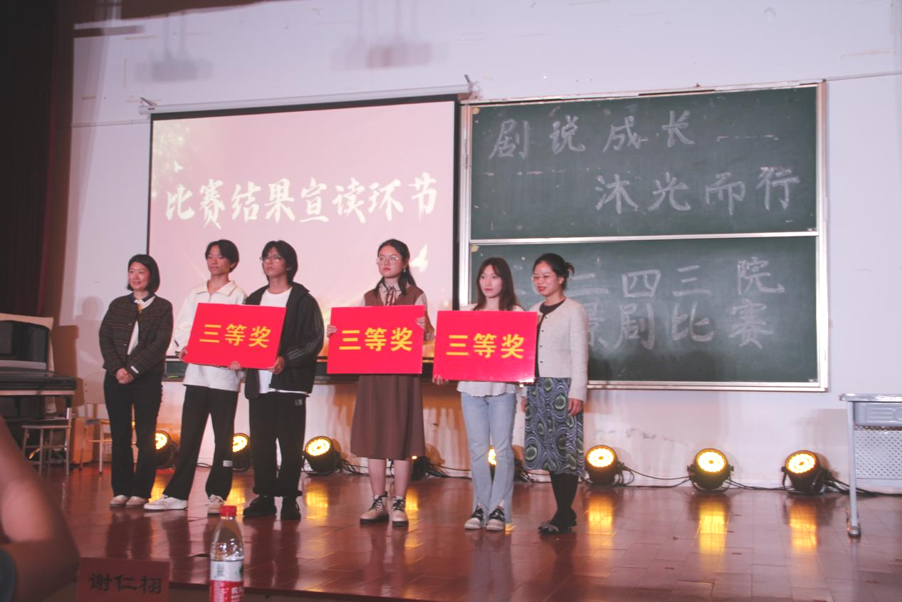 23级生物医学工程班剧目《孔雀》,以虚荣、自卑产生的心理为主题,通过魔幻现实主义的手法,讲述了家境一般的张小艺同学及其家人,从对家庭经济现状的自卑和挣扎,到获得财富却失去健康的悔恨,最终都与自我和解,放下虚荣的故事。该剧以丰富深刻的故事内涵,加之演员们充满感情的精彩演绎,获得了评委和观众的一致认可,荣获二等奖。同时,23级食品科学与工程班剧目《逐光》和23级生物工程班剧目《朋辈的力量》也以动人的表演,触人心弦的情绪荣获三等奖。