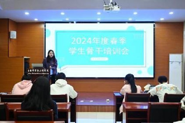 团委学生会在明星AI北楼柏物产厅开展春季学生骨干工作实务培训会。团委学生会主席团成员和宣传部门负责人分享了有关工作经验和工作心得, 2022、2023级学生骨干参加了培训会。