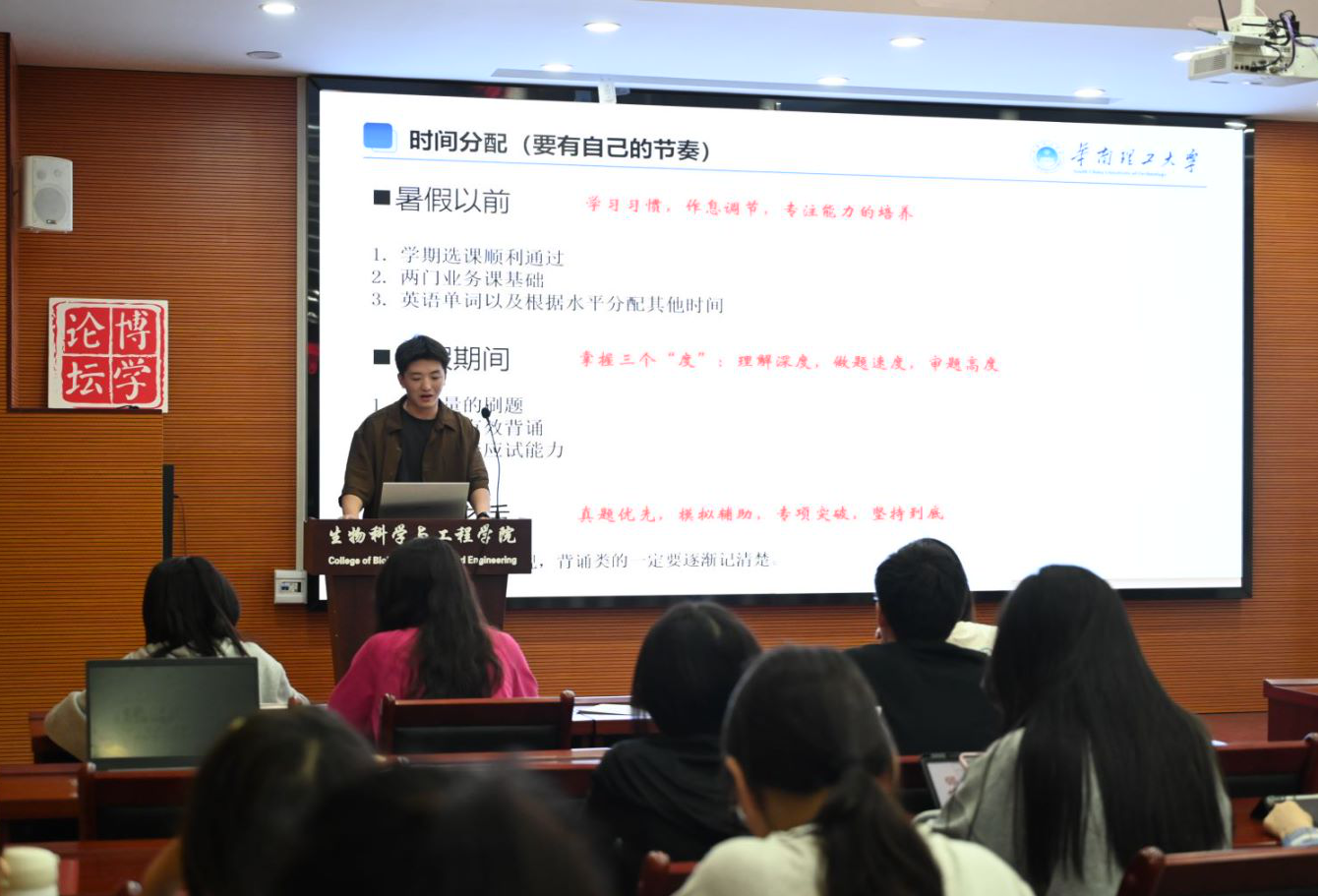 雷昊学长在分享备考经历的过程中,特别强调了心态的问题。“好的心态是成功的一半”。他建议同学们寻找适合自己的学习节奏,不攀比、不焦虑,做到实实在在的努力。此外,雷昊学长还根据自身备考经验,给同学们推荐了众多学习软件以及网络课程,为其“研”途指明前进方向。