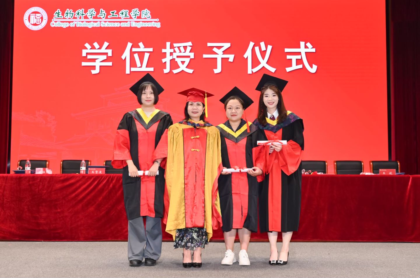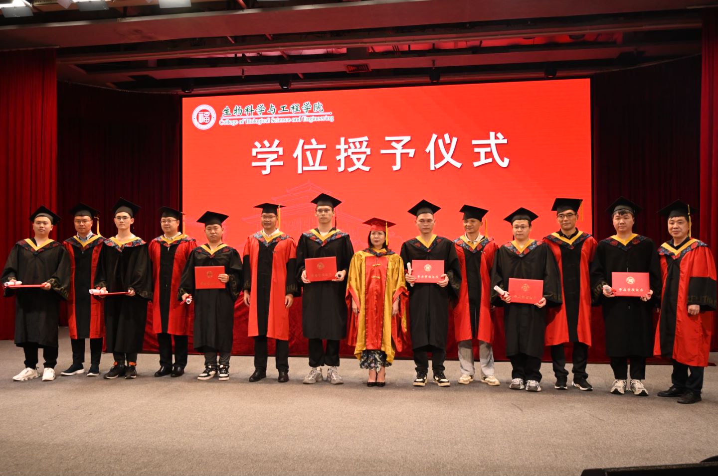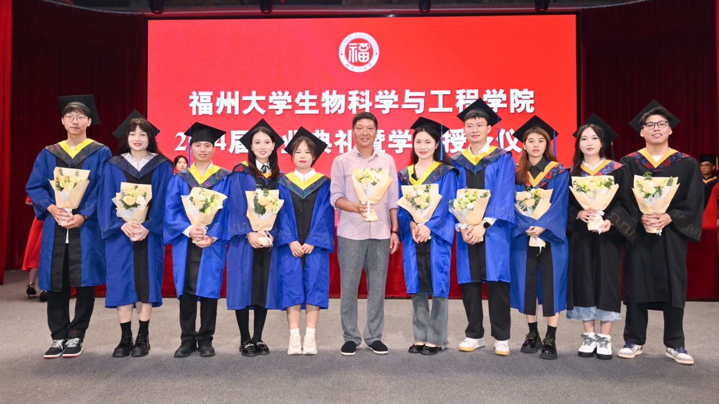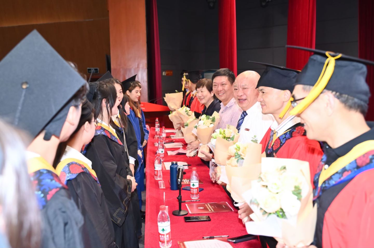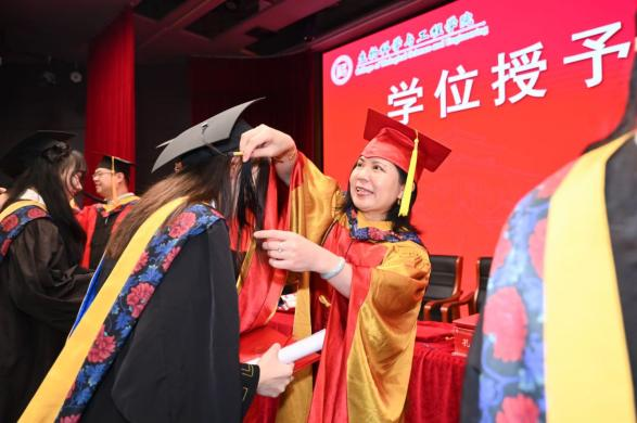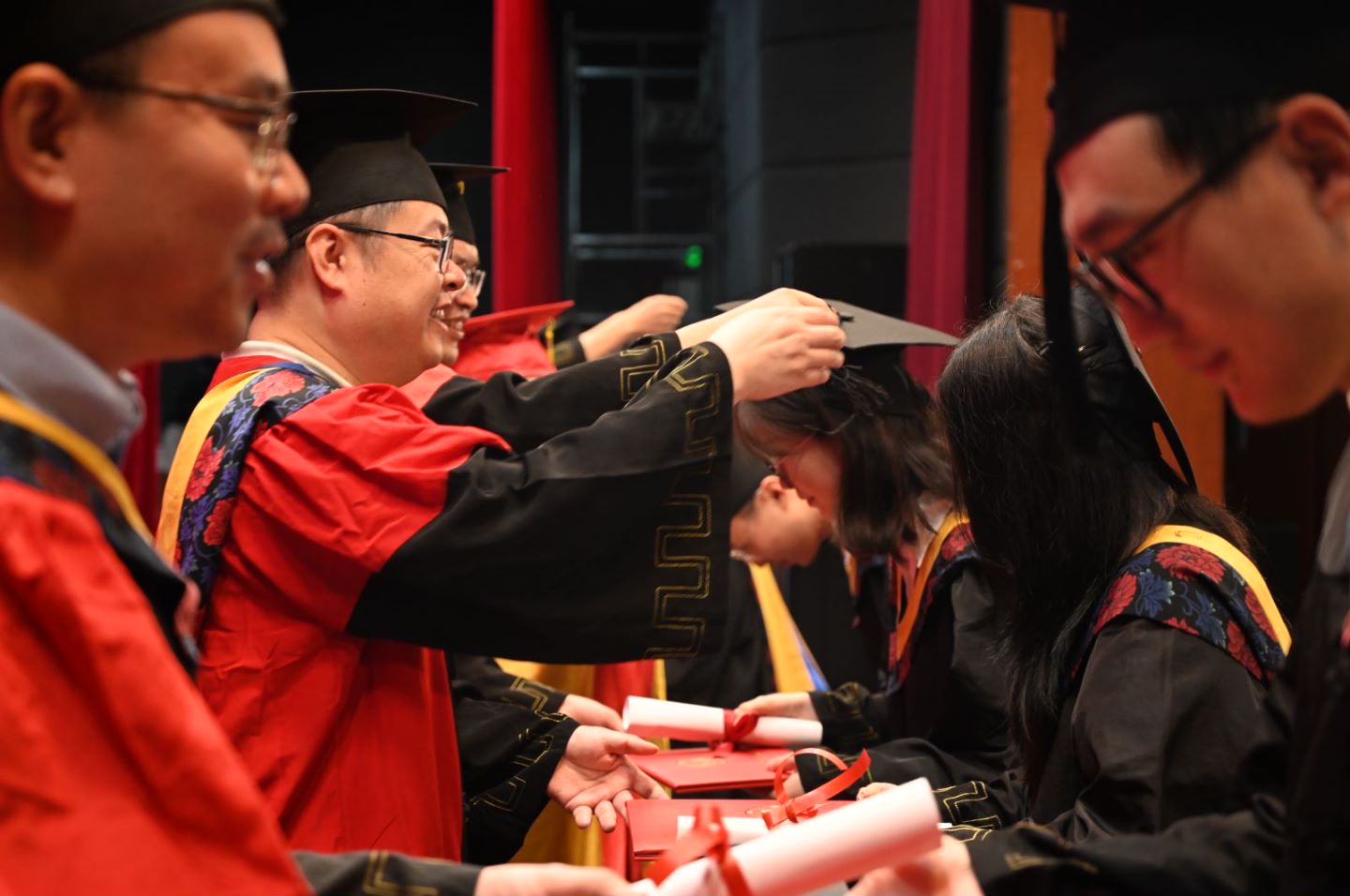 2024届毕业生拨穗正冠、授予学位证书,并与毕业生合影留念。
